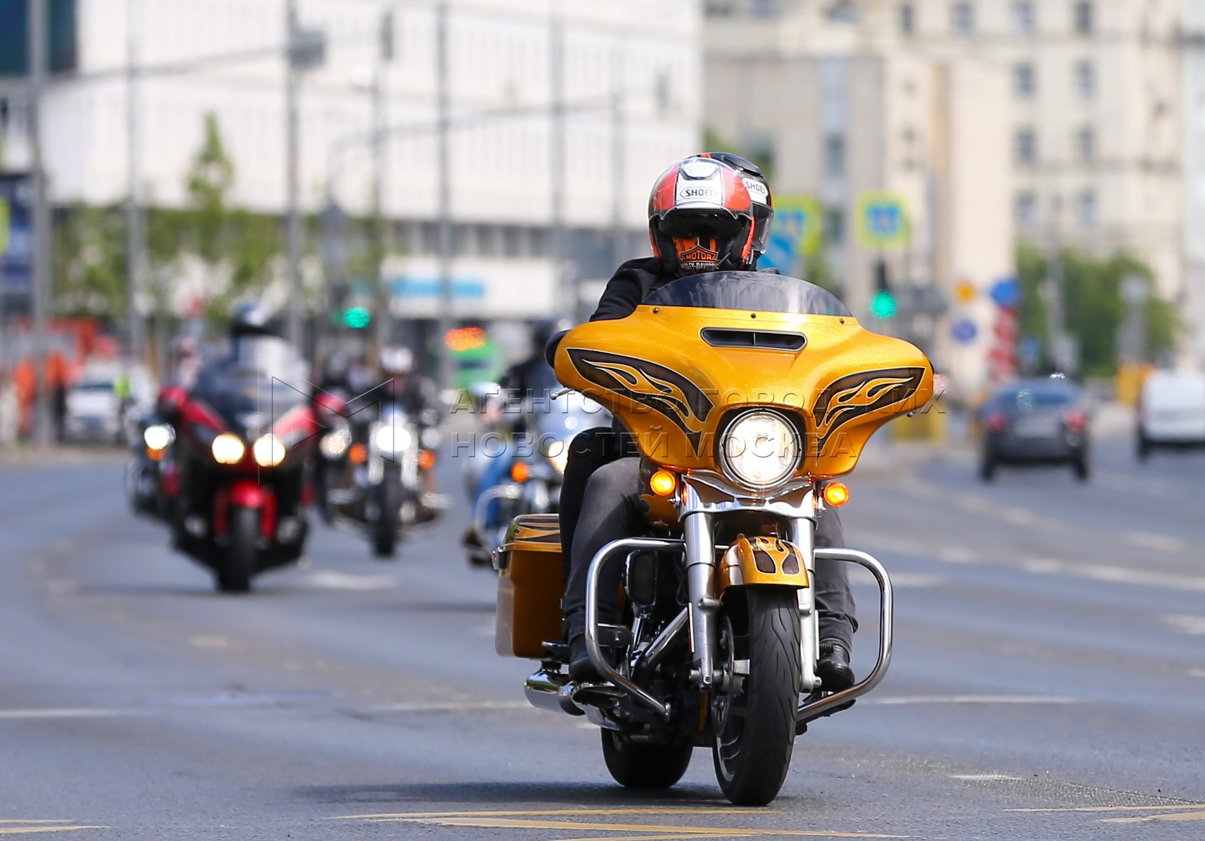 • Описание: Участники заезда Московского мотофестиваля на Садовом кольце.