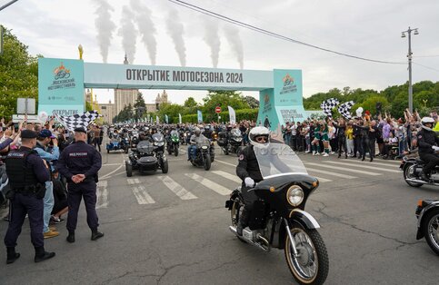 Сбор гостей и участников и старт заезда Московского мотофестиваля на Воробьевых г...