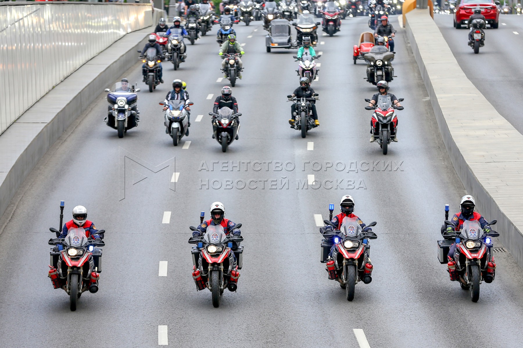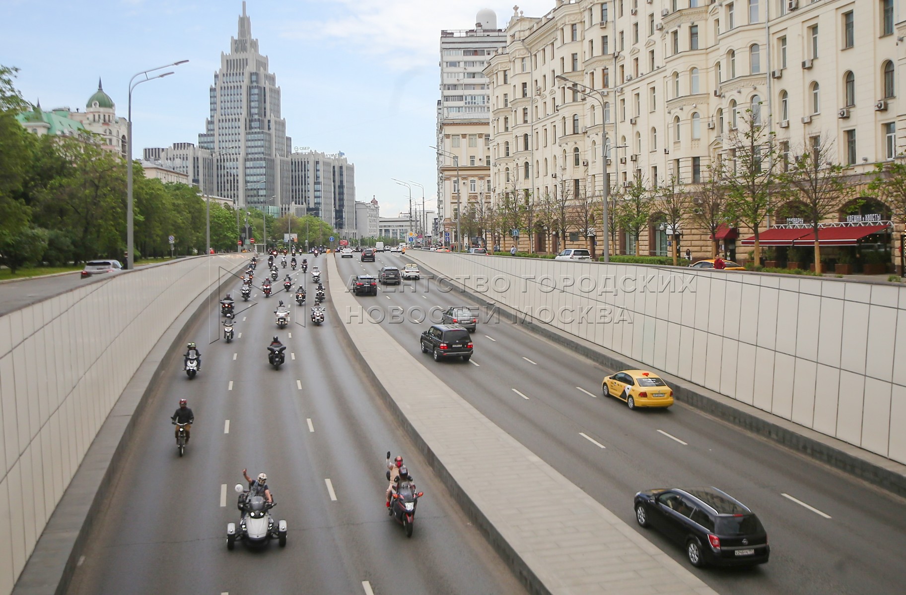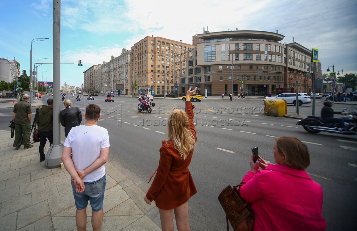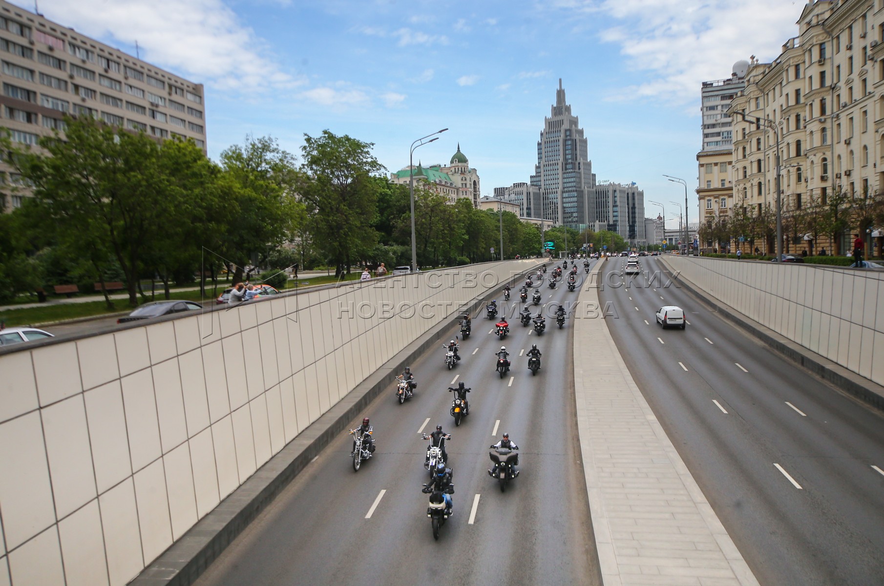 • Описание: Участники заезда Московского мотофестиваля на Садовом кольце.