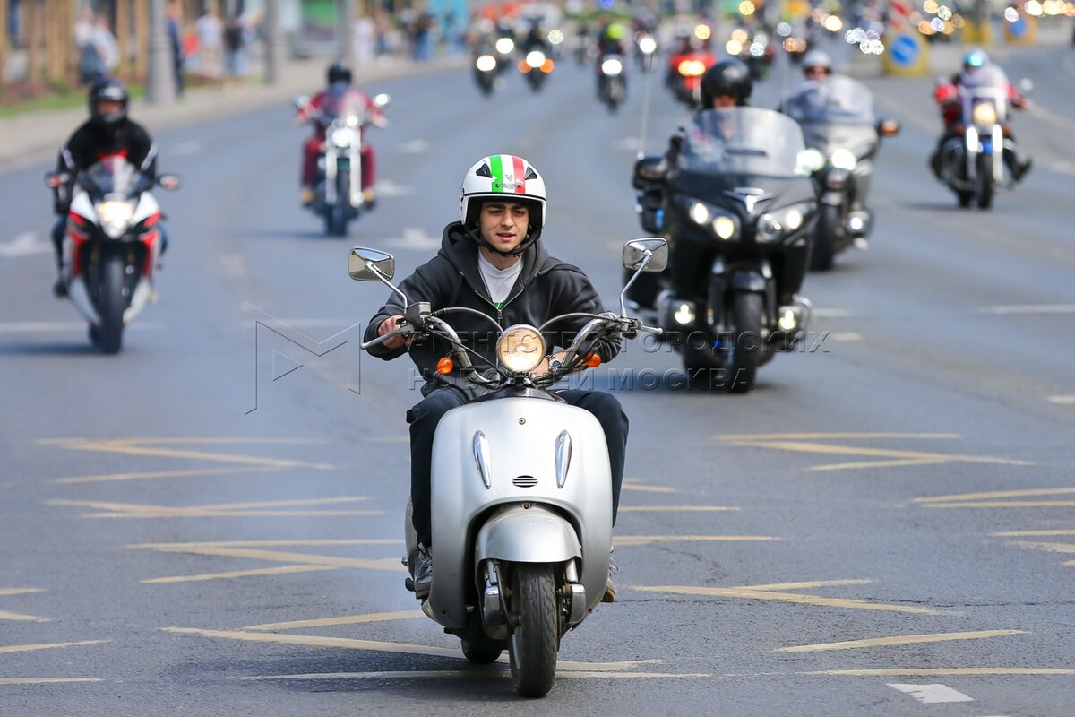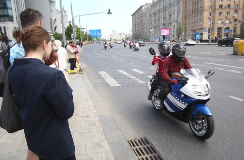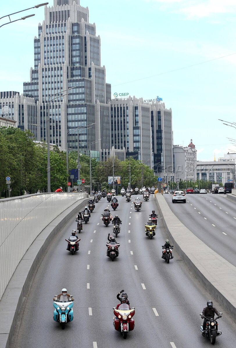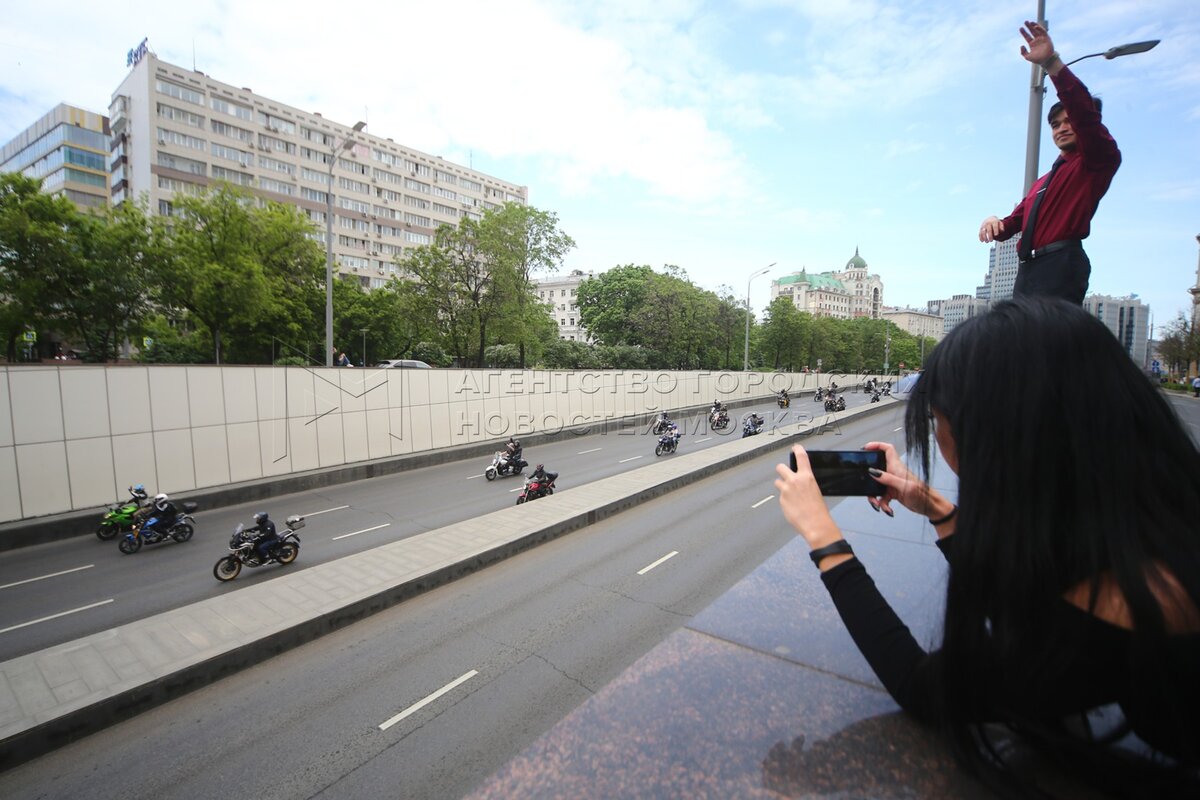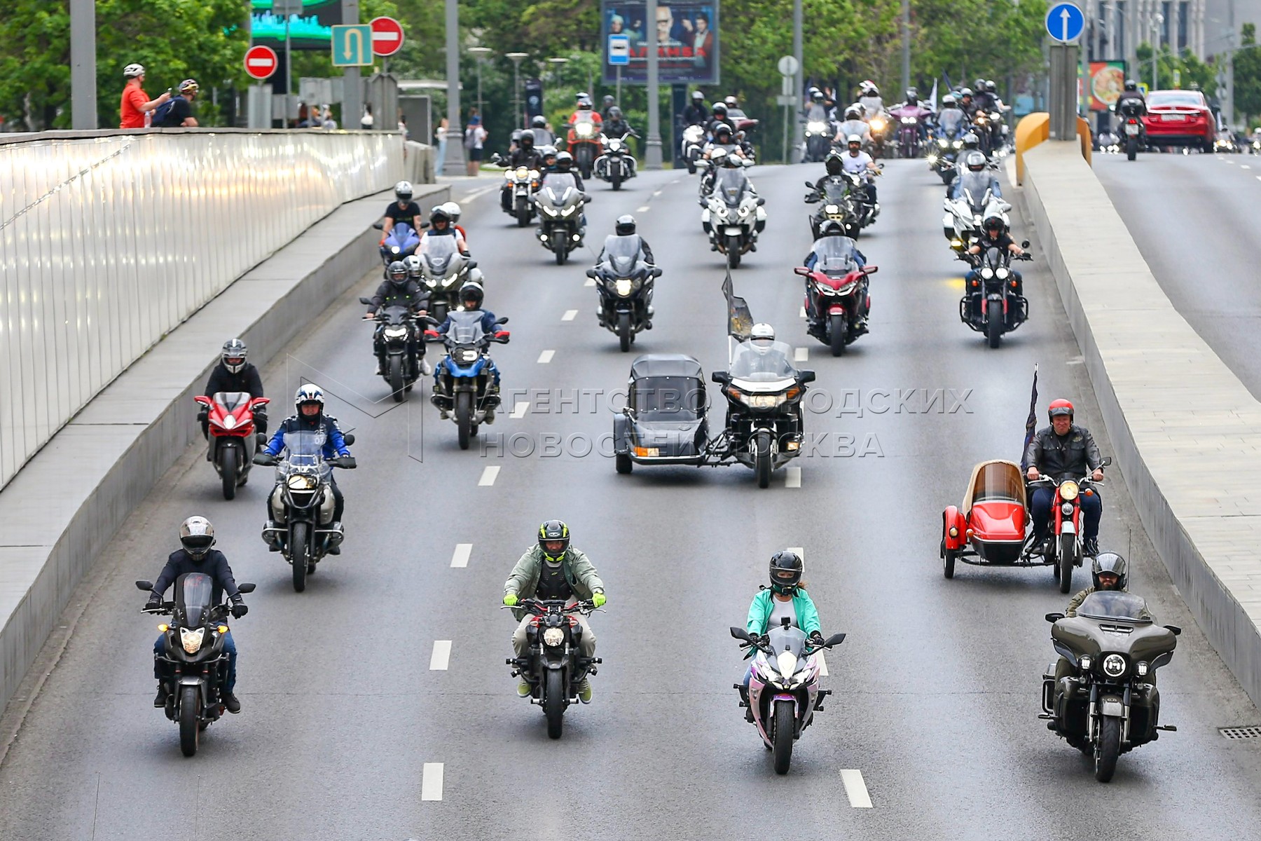 • Описание: Участники заезда Московского мотофестиваля на Садовом кольце.