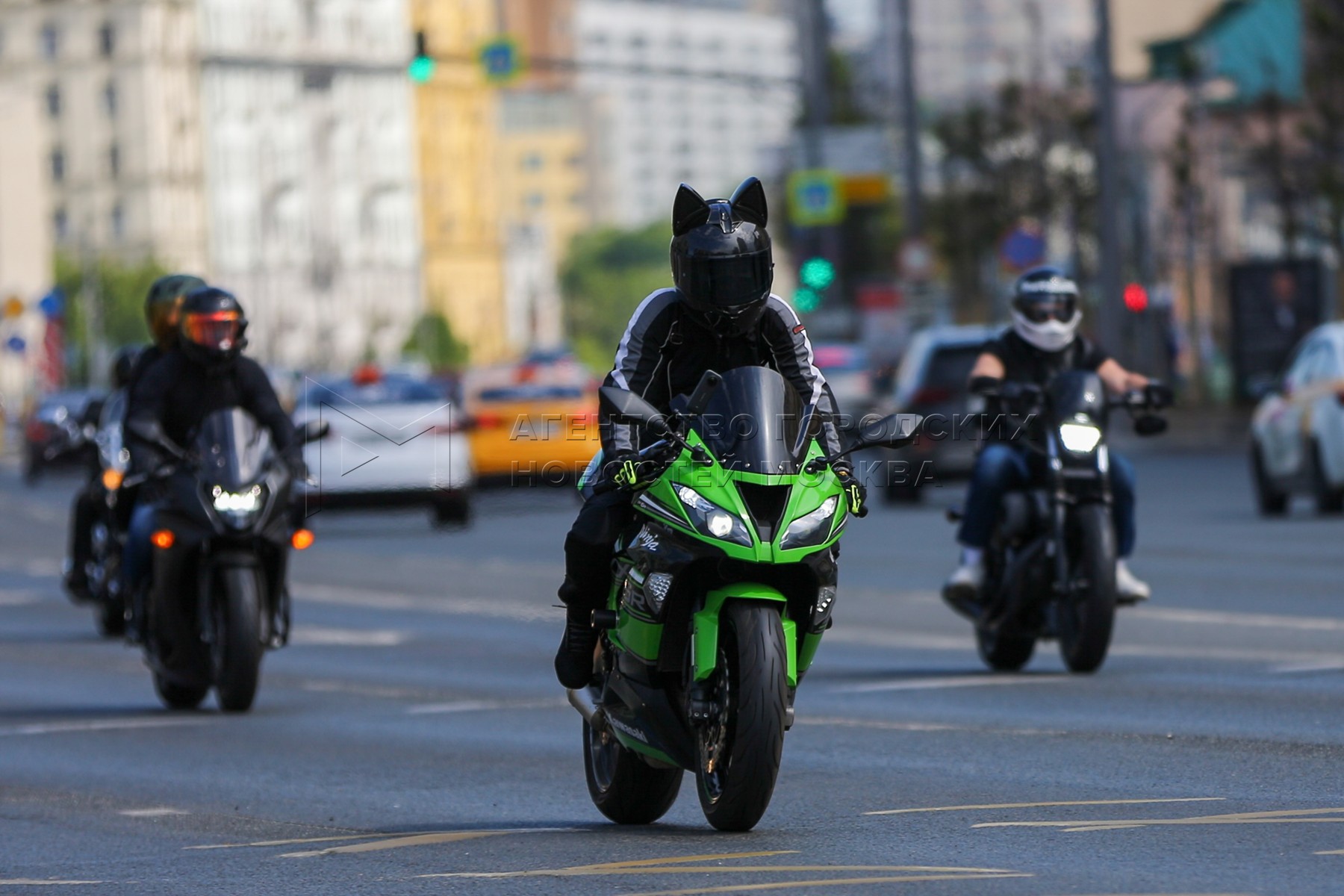 • Описание: Участники заезда Московского мотофестиваля на Садовом кольце.