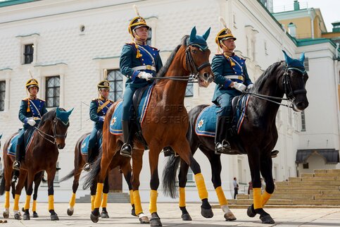 • Заголовок: Церемония развода пеших и конных караулов президентского полка на Соборной площади Кремля