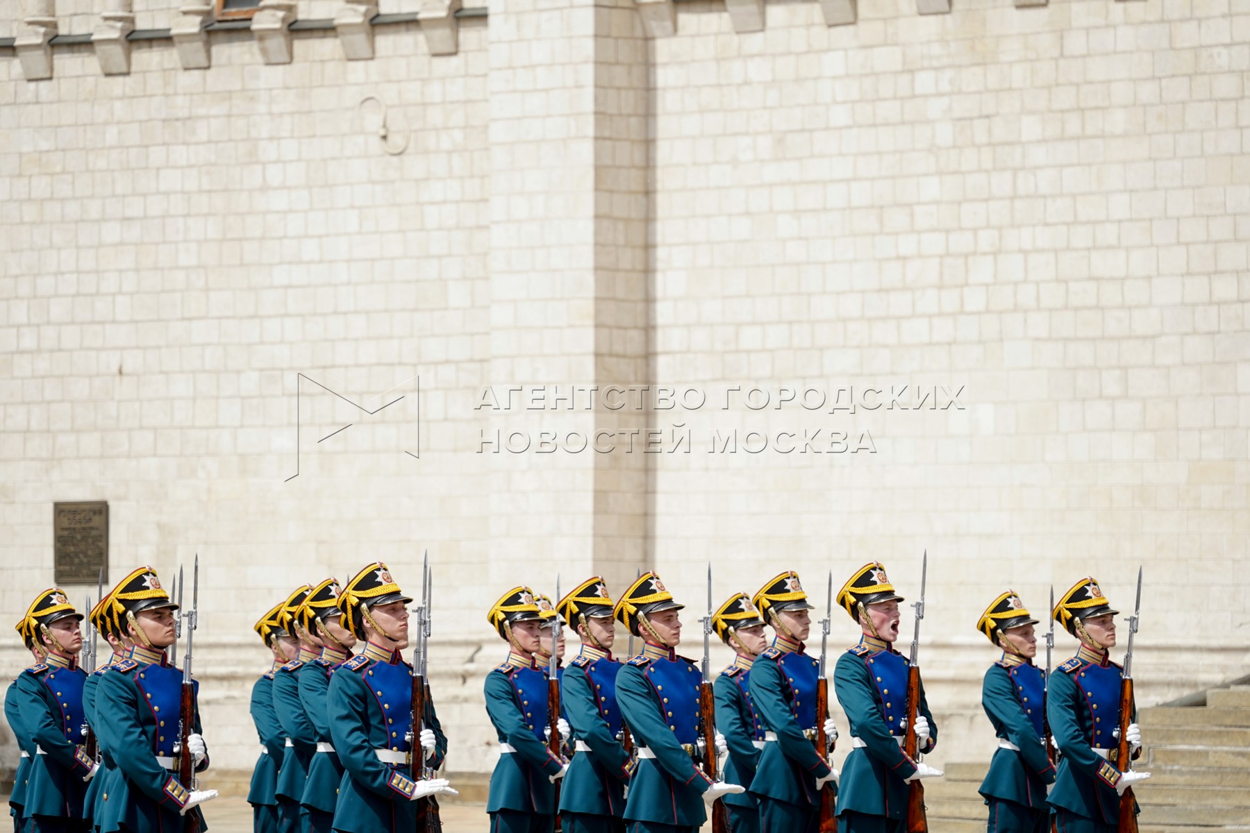 Церемония развода пеших и конных караулов президентского полка СКМК ФСО России на...