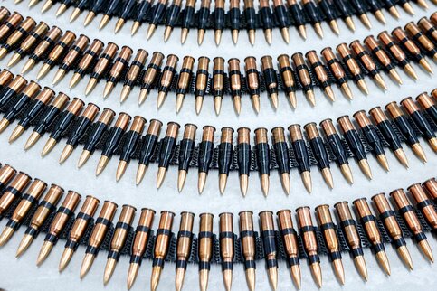 Пулеметная лента с патронами. Открытие XVI Международной выставки вертолетной инд...