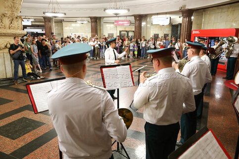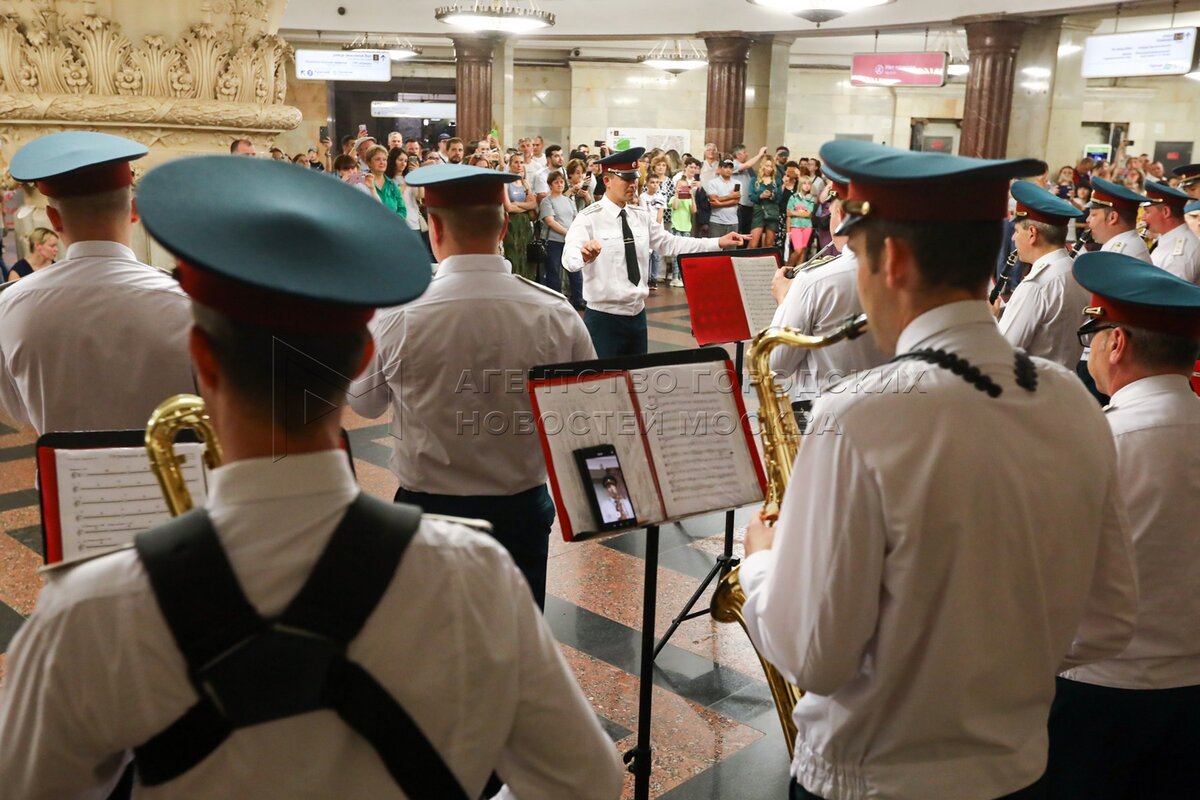 - Заголовок: Выступление оркестра Росгвардии в Московском метрополитене в День России