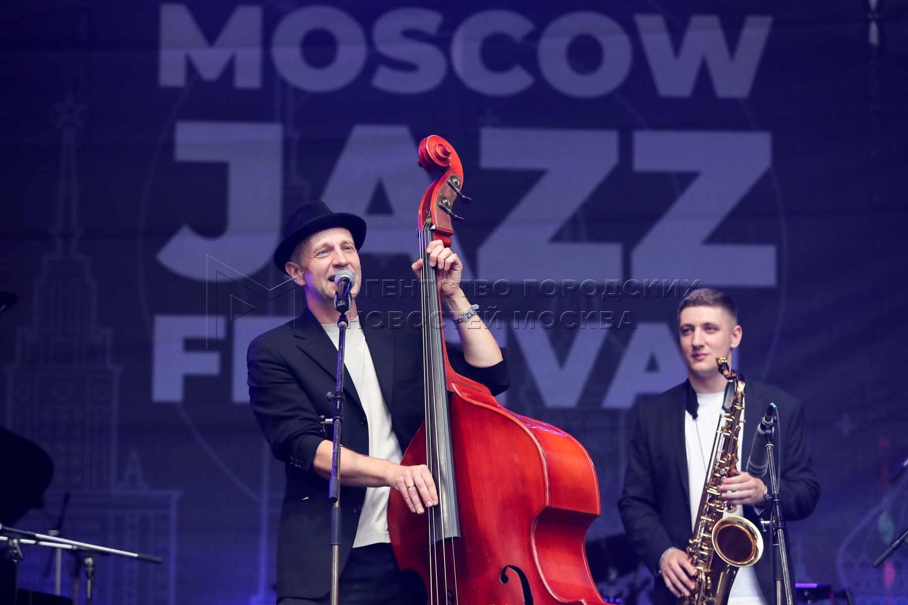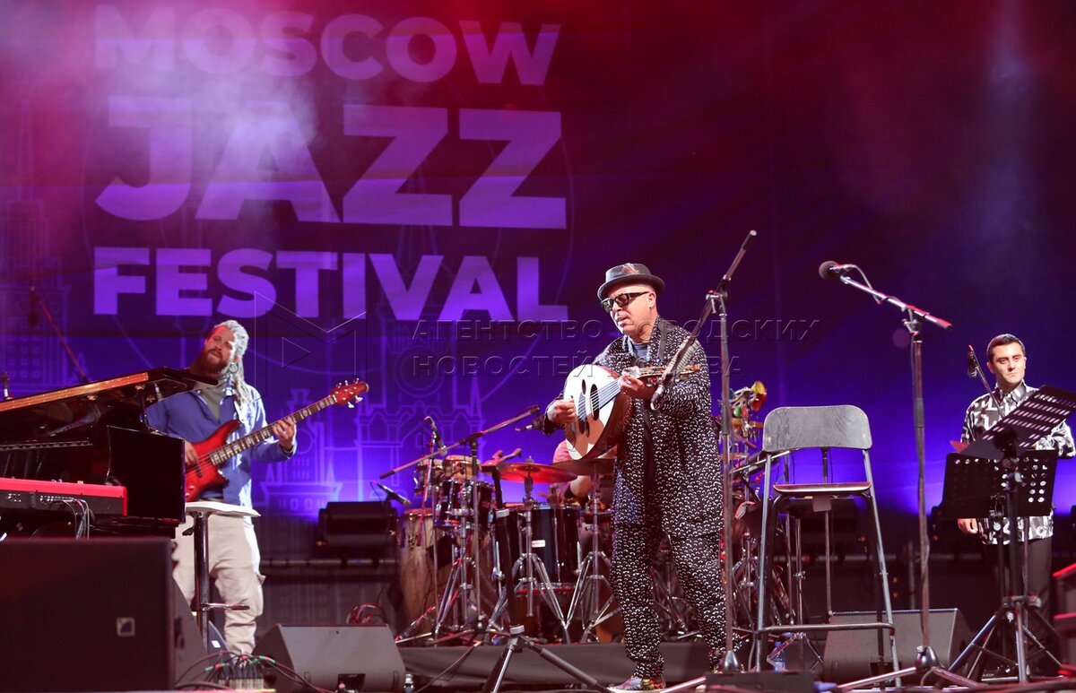 Лидер группы «Меджикул» Олег Сапронов (слева). Музыкальная программа Moscow Jazz ...