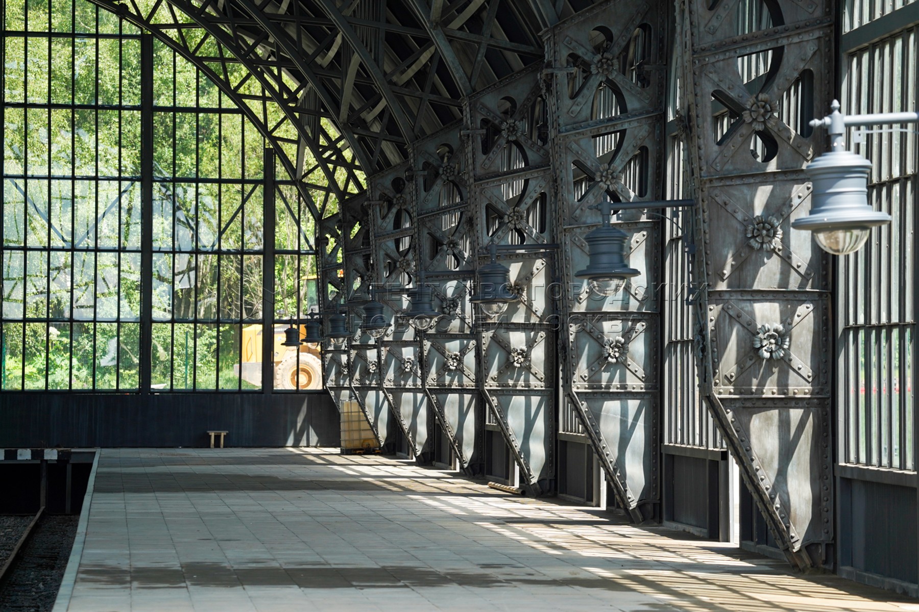 Вокзал и депо на территории кинопарка «Москино» в Красной Пахре.