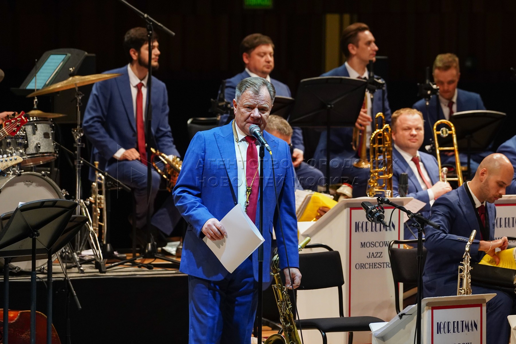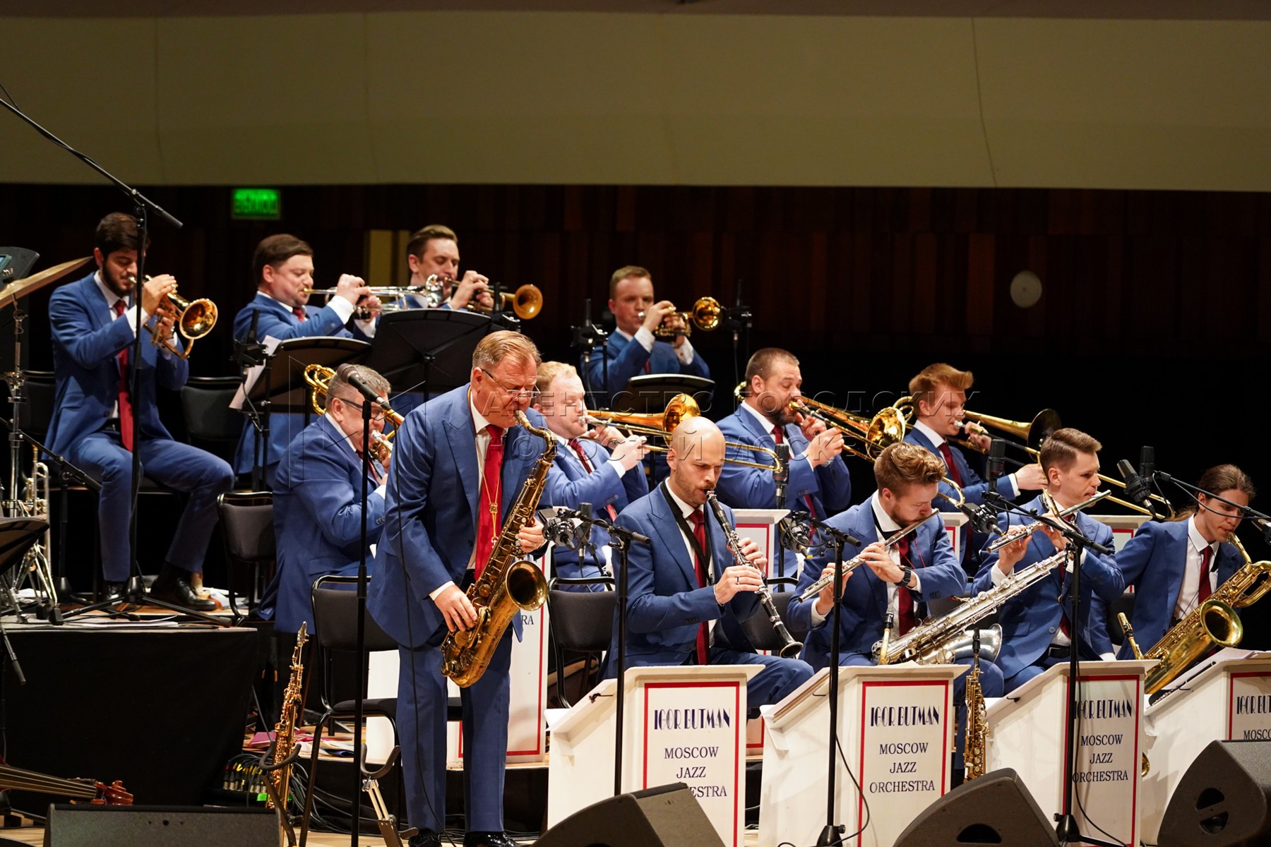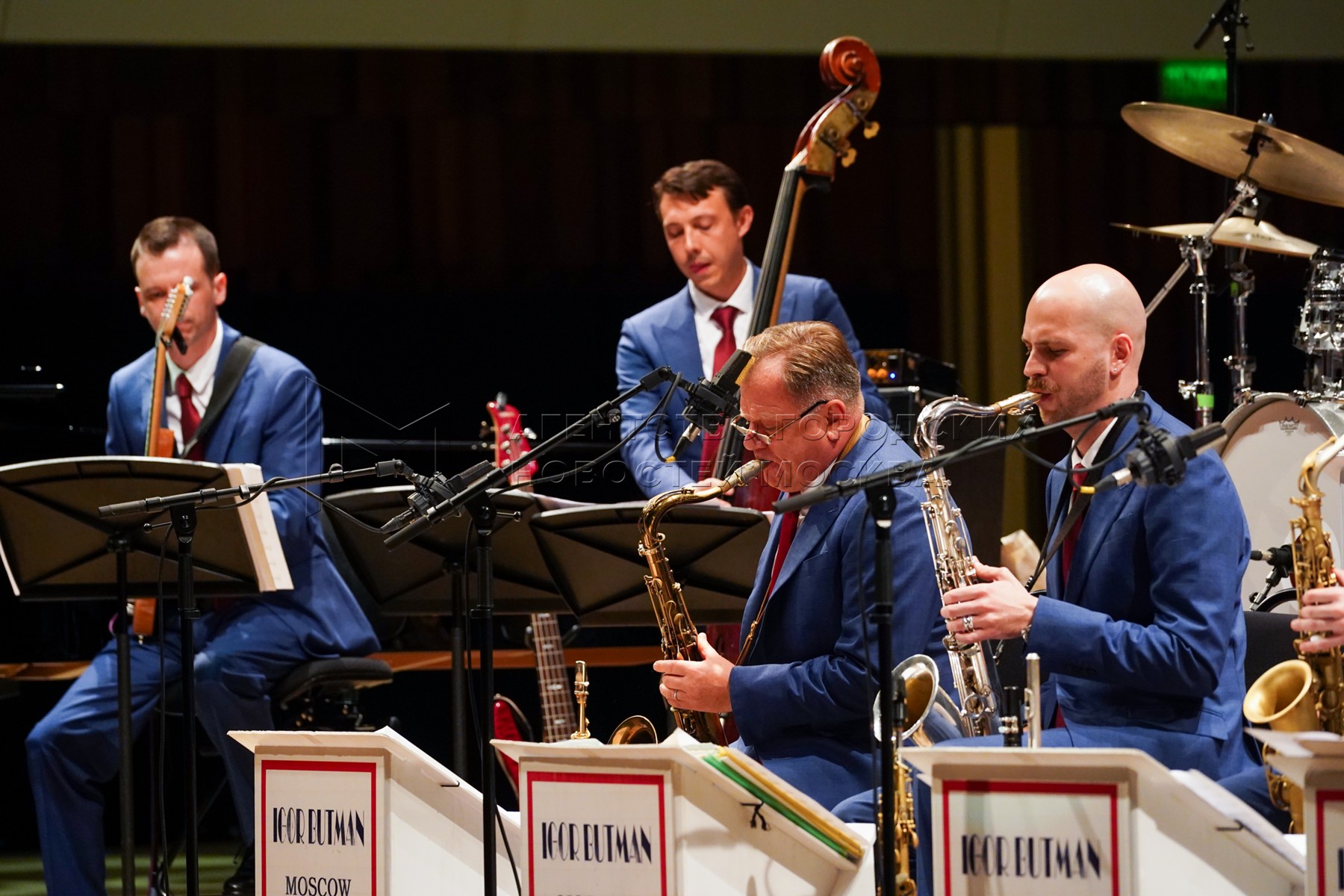 • Описание: Московский джазовый оркестр под руководством саксофониста Игоря Бутмана во время торжественного закрытия Moscow Jazz Festival – 2024 в концертном зале «Зарядье».