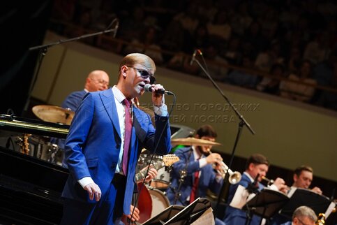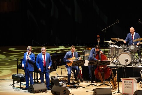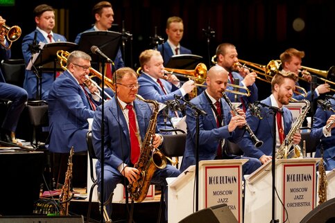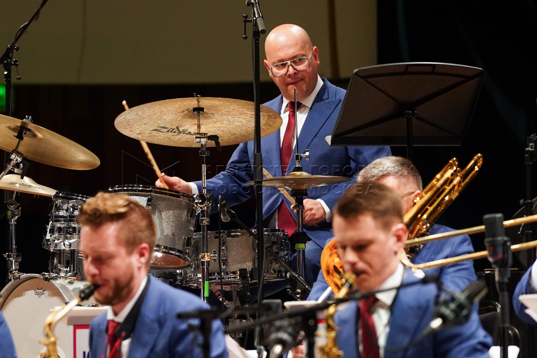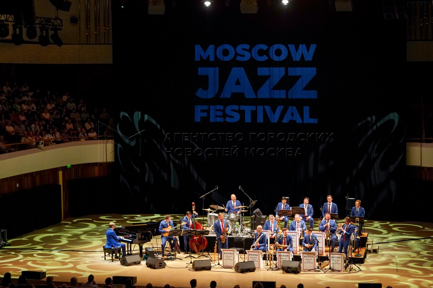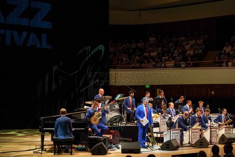 • Описание: Московский джазовый оркестр под руководством саксофониста Игоря Бутмана во время торжественного закрытия Moscow Jazz Festival – 2024 в концертном зале «Зарядье».