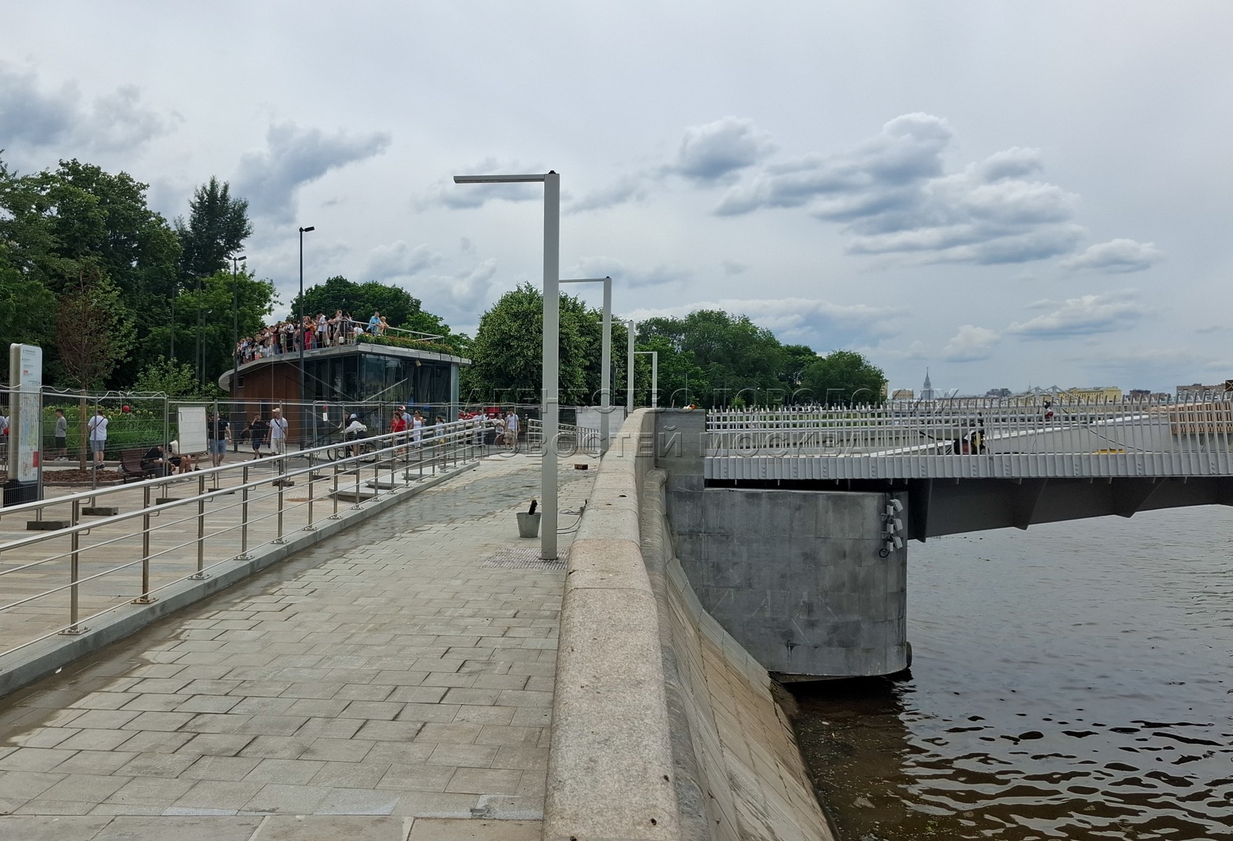 • Описание: Подготовка к открытию велопешеходного моста через Водоотводный канал, соединяющего остров Балчуг и Крымскую набережную.