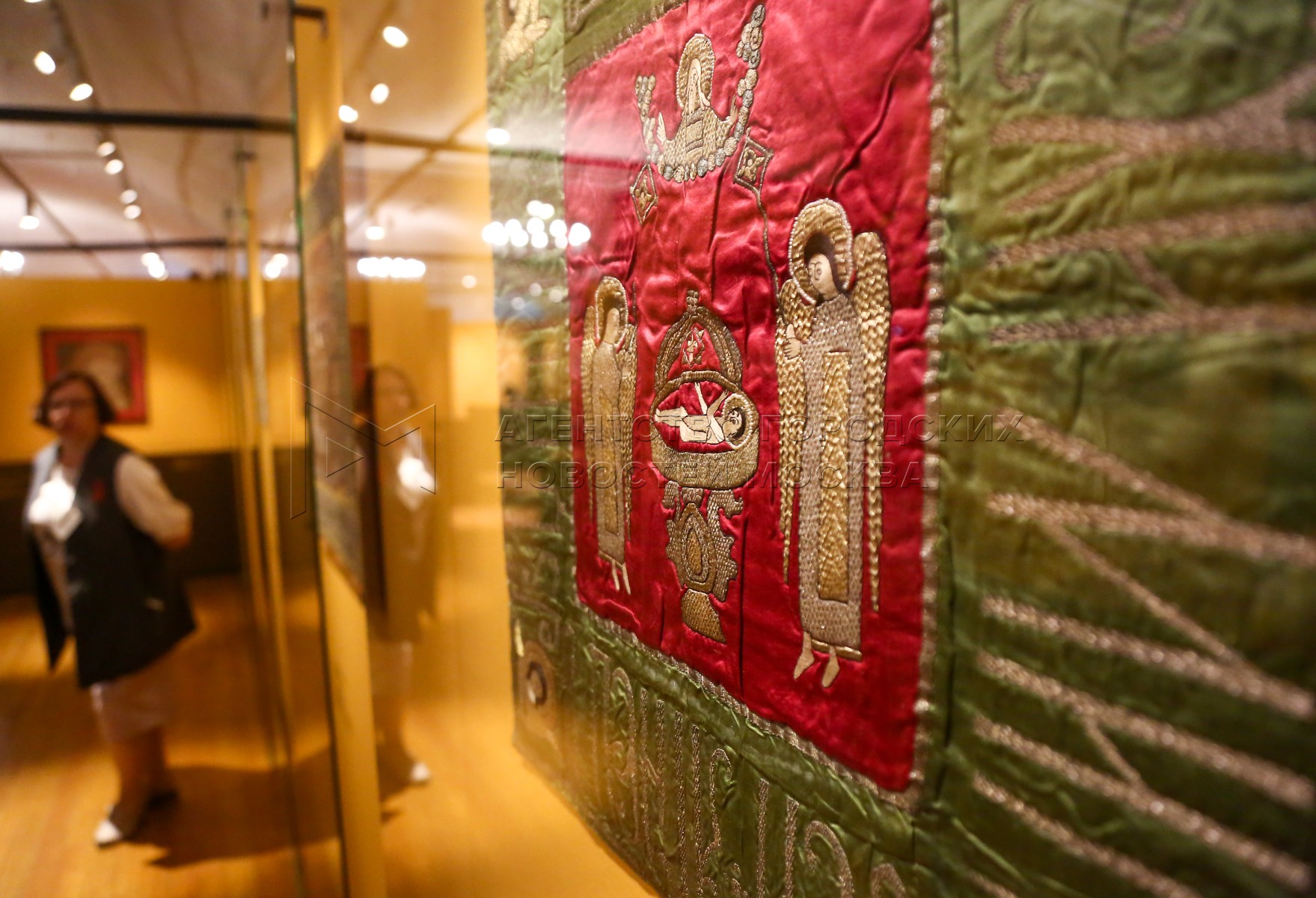 Пресс-показ выставки «Живопись нитью», посвященной лицевому шитью, в Музее древне...