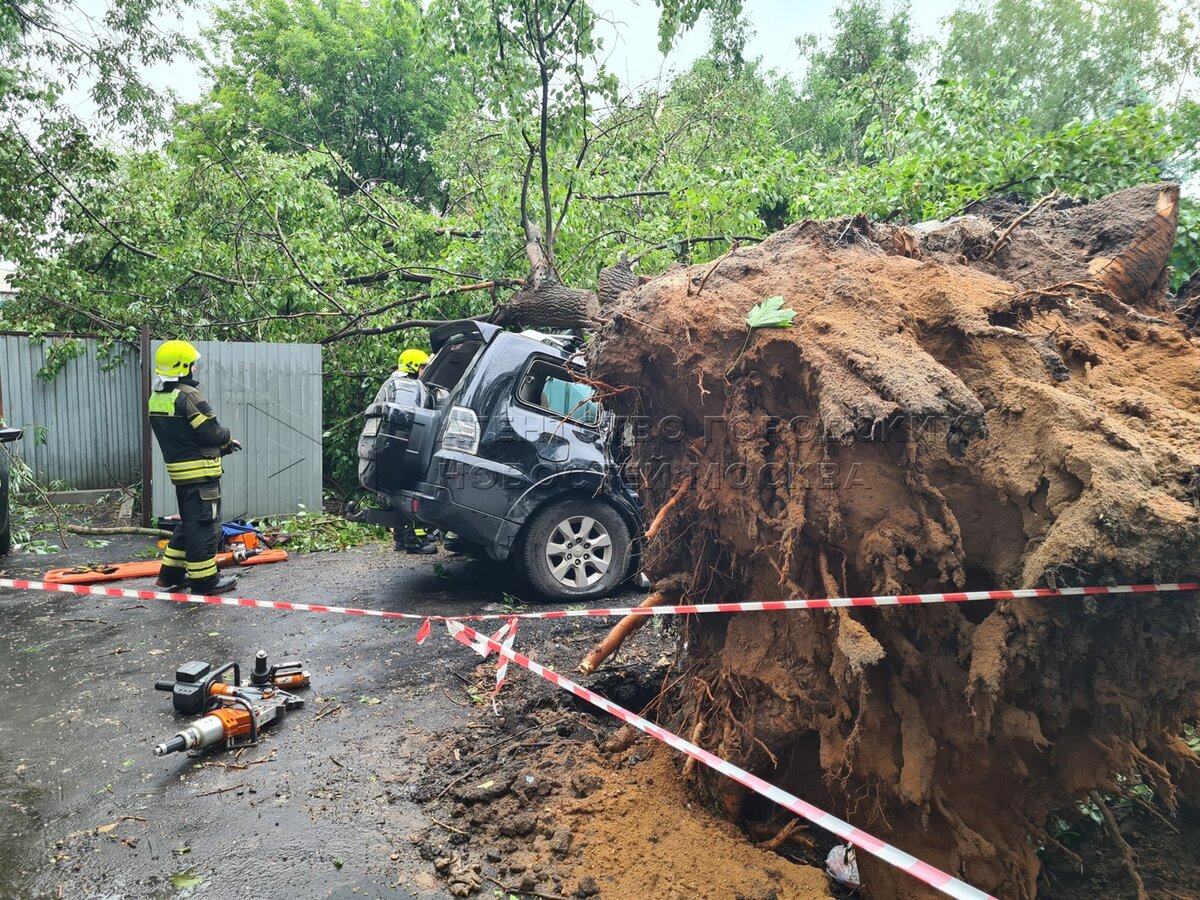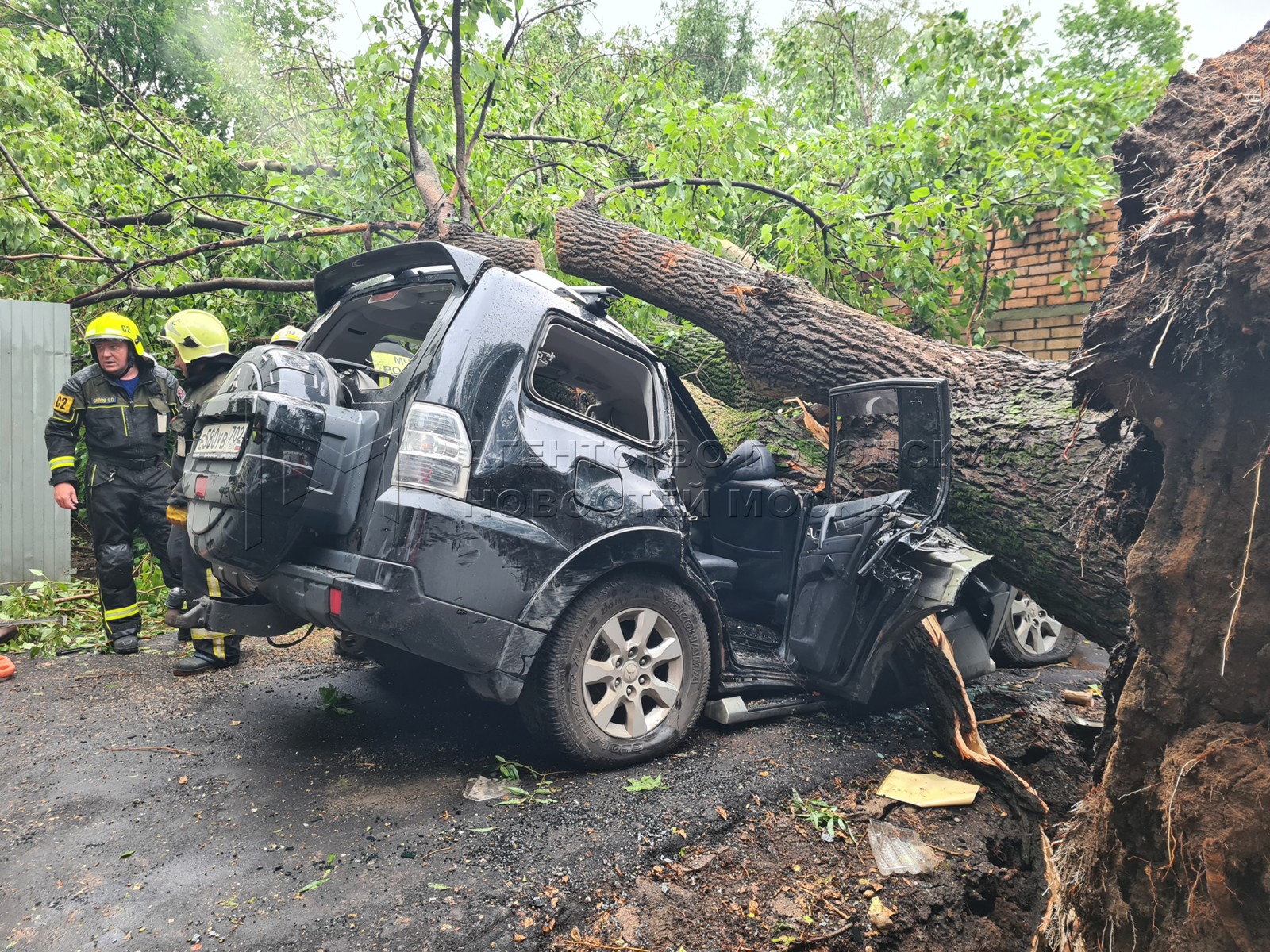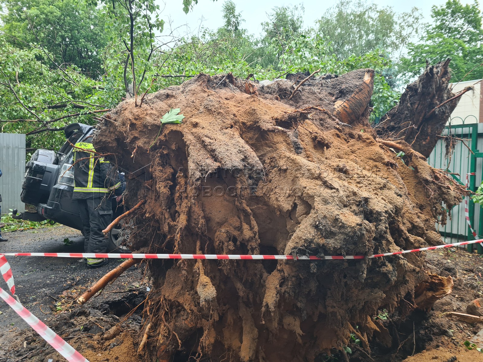 • Заголовок: Последствия падения дерева на севере Москвы на внедорожник с водителем внутри
