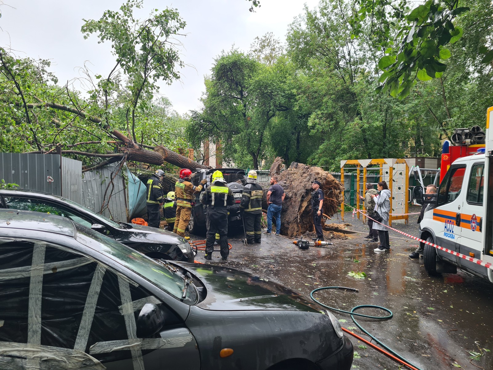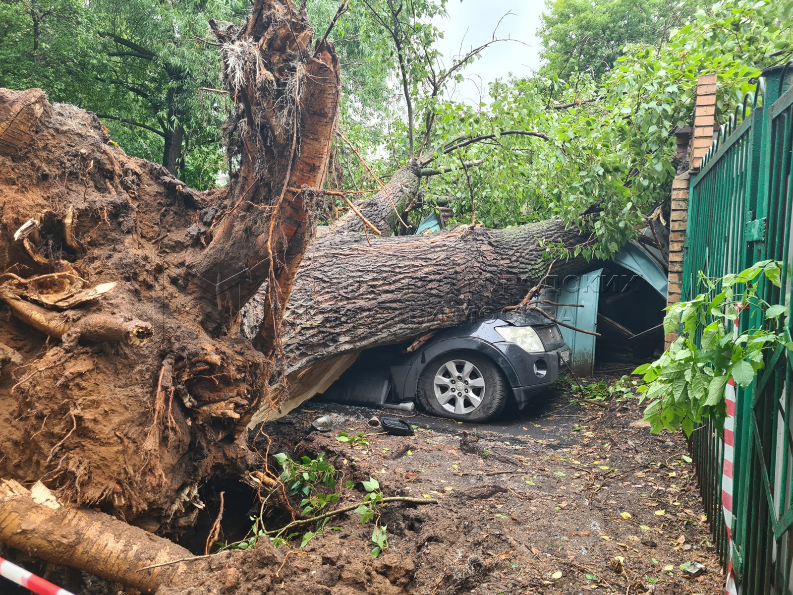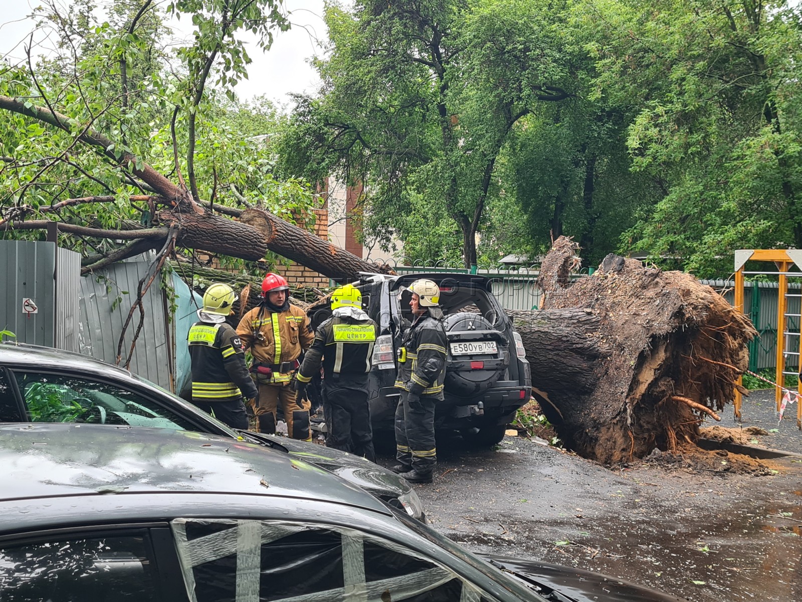 • Заголовок: Последствия падения дерева на севере Москвы на внедорожник с водителем внутри