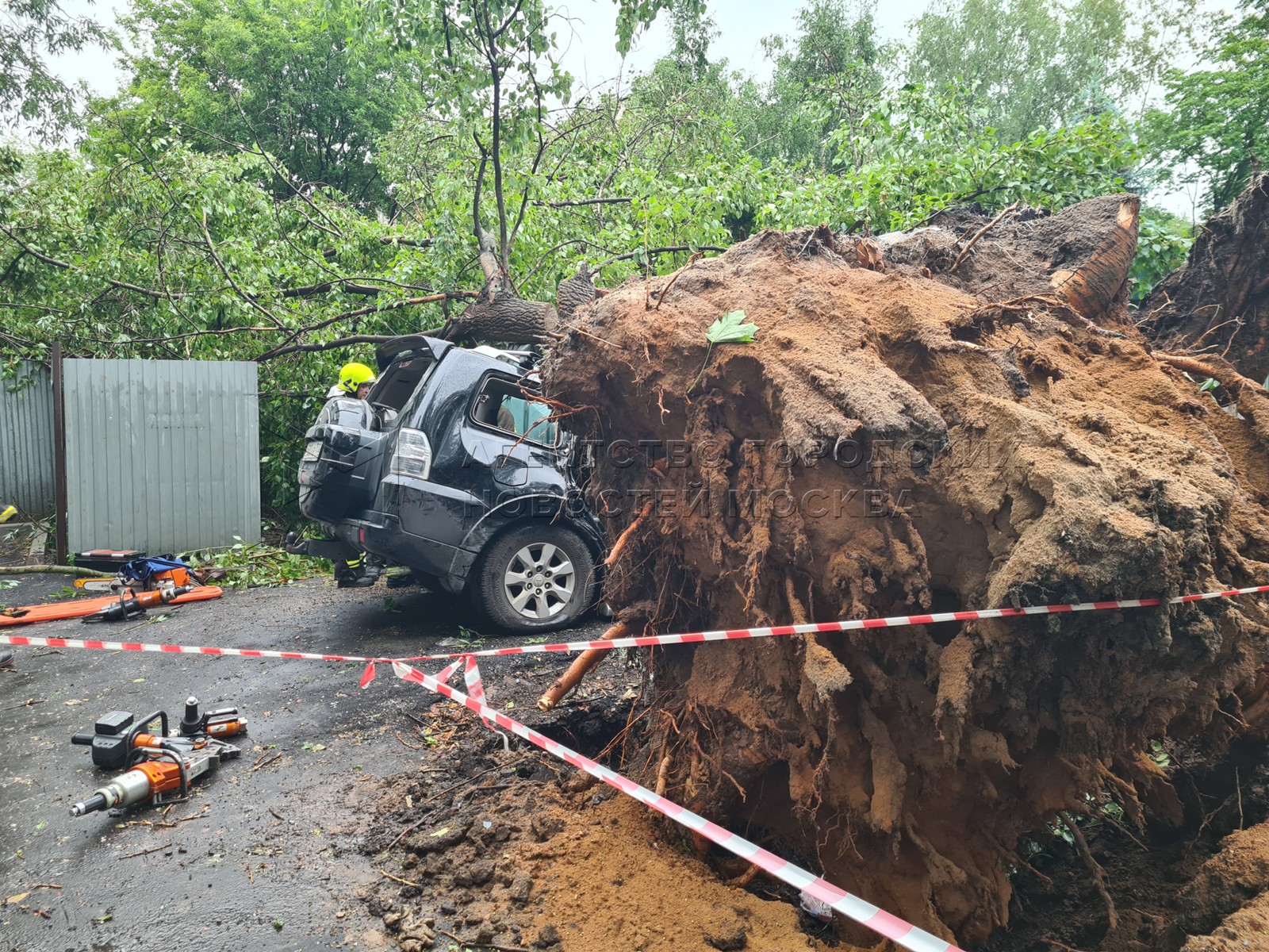 Дерево упало во дворе д. 10 на ул. Академика Ильюшина на внедорожник Mitsubishi, в котором находился водитель. Из салона машины пострадавшего извлекали пожарно-спасательные подразделения.
