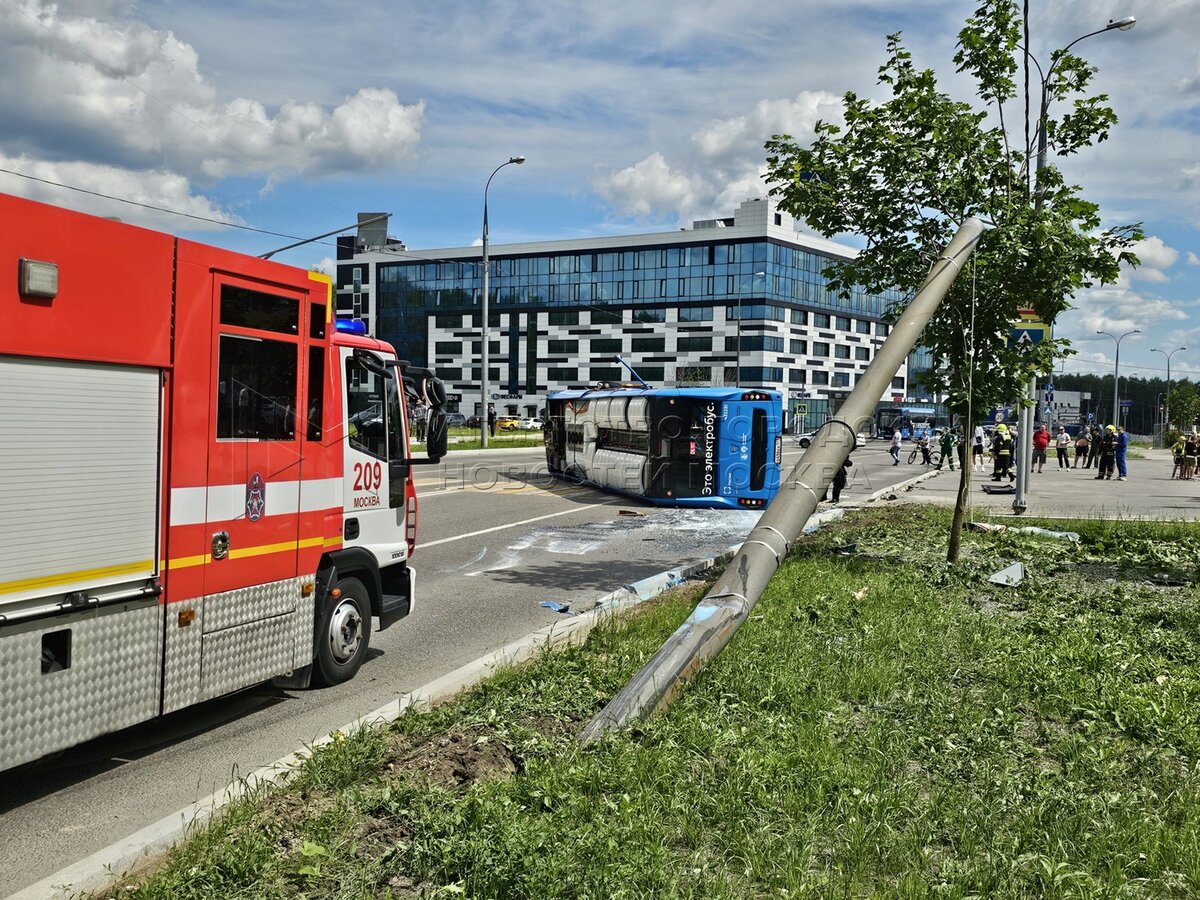 Электробус перевернулся после наезда на столб на ул. Лухмановская, никто не постр...