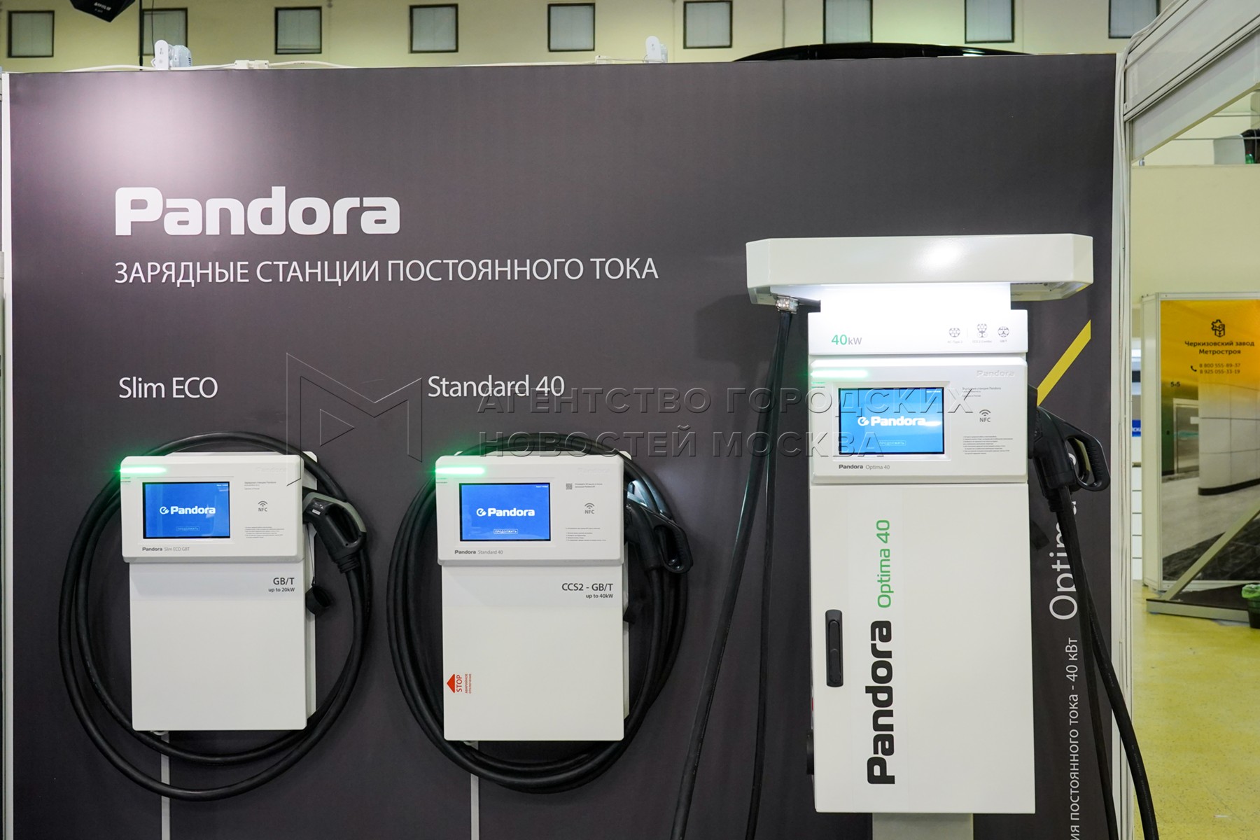 Пистолеты автозаправочной станции. Российская неделя общественного транспорта и городской мобильности в Центральном выставочном комплексе «Экспоцентр» на Красной Пресне.