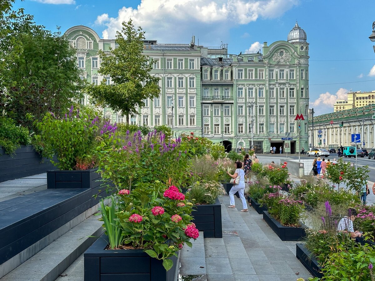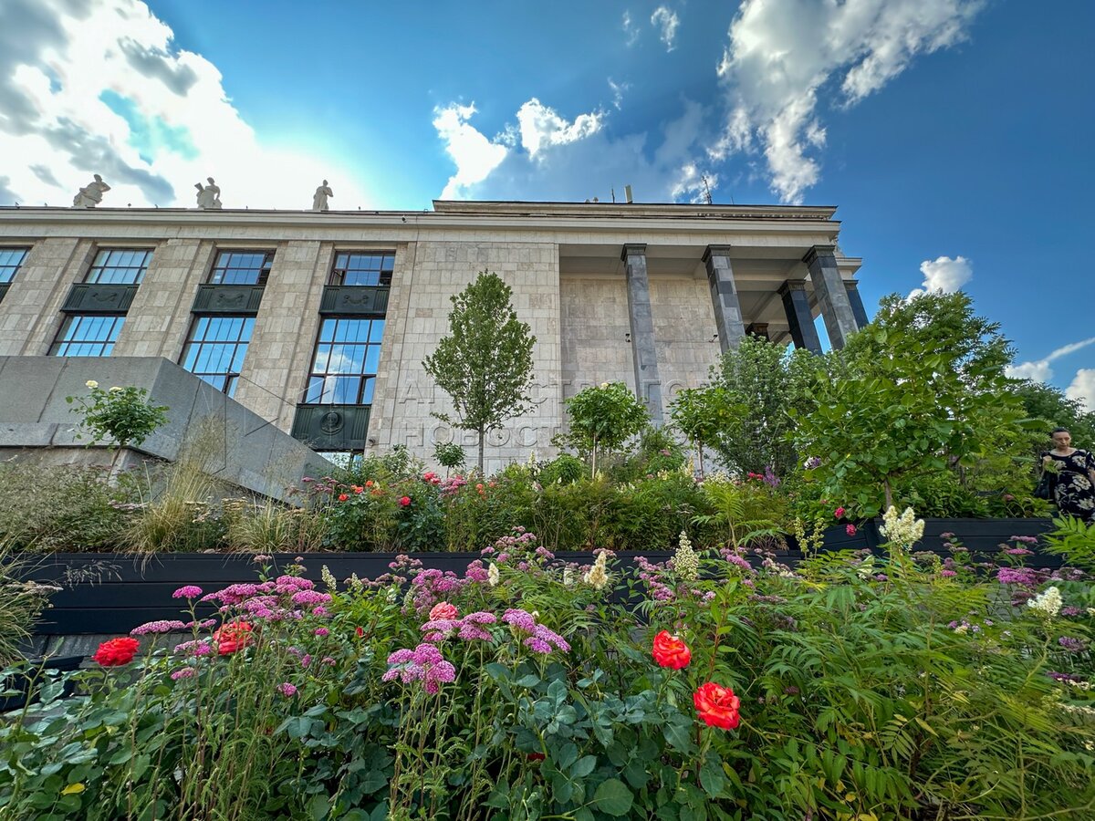 Лестницу Российской государственной библиотеки украсили живыми цветами и растениями в рамках фестиваля «Лето в Москве. Сады и цветы».