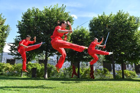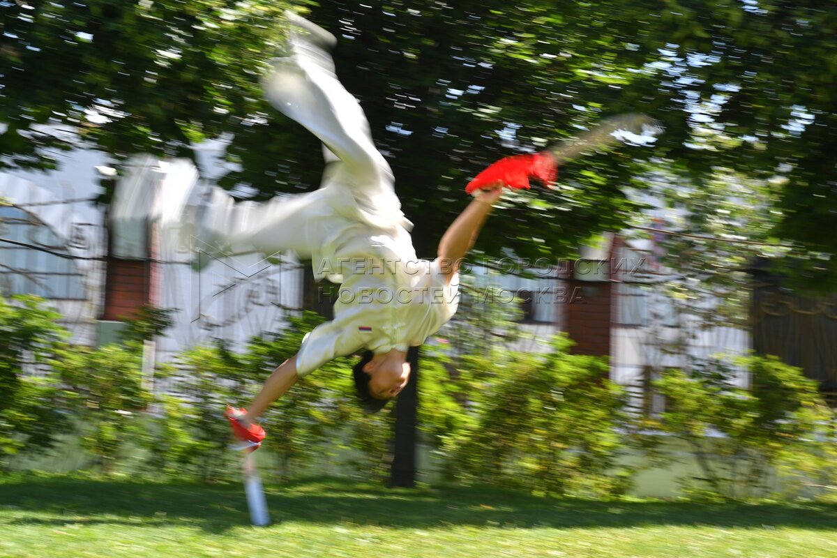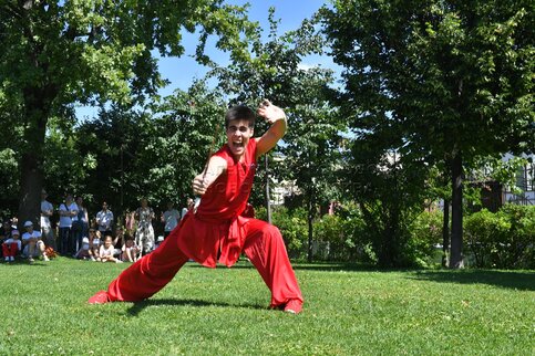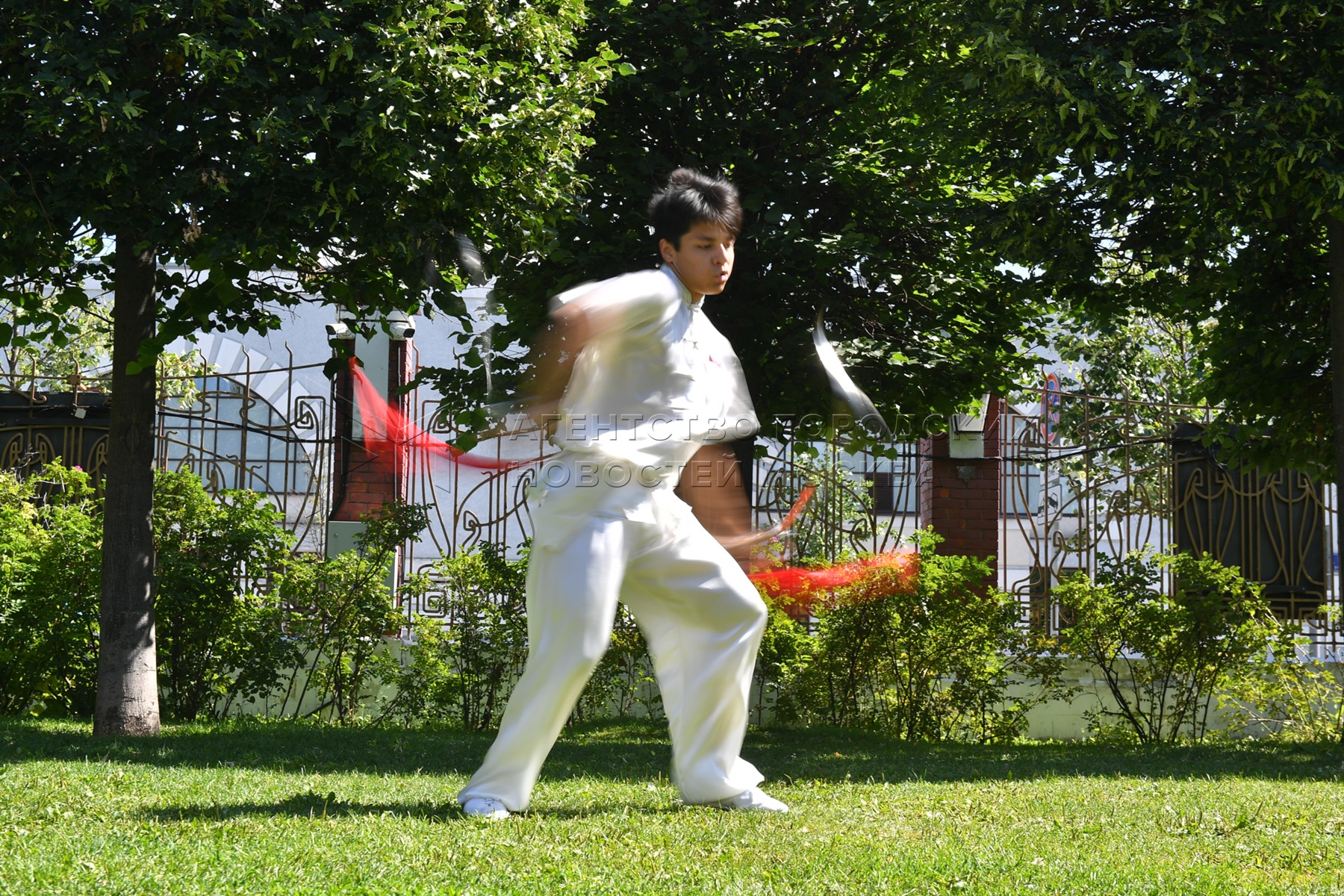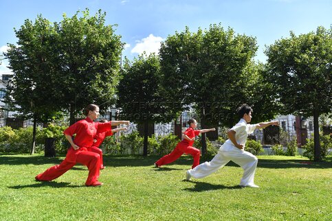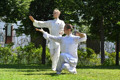 Торжественное открытие серии бесплатных тренировок по ушу в рамках проекта «Мой спортивный район» в саду «Эрмитаж».