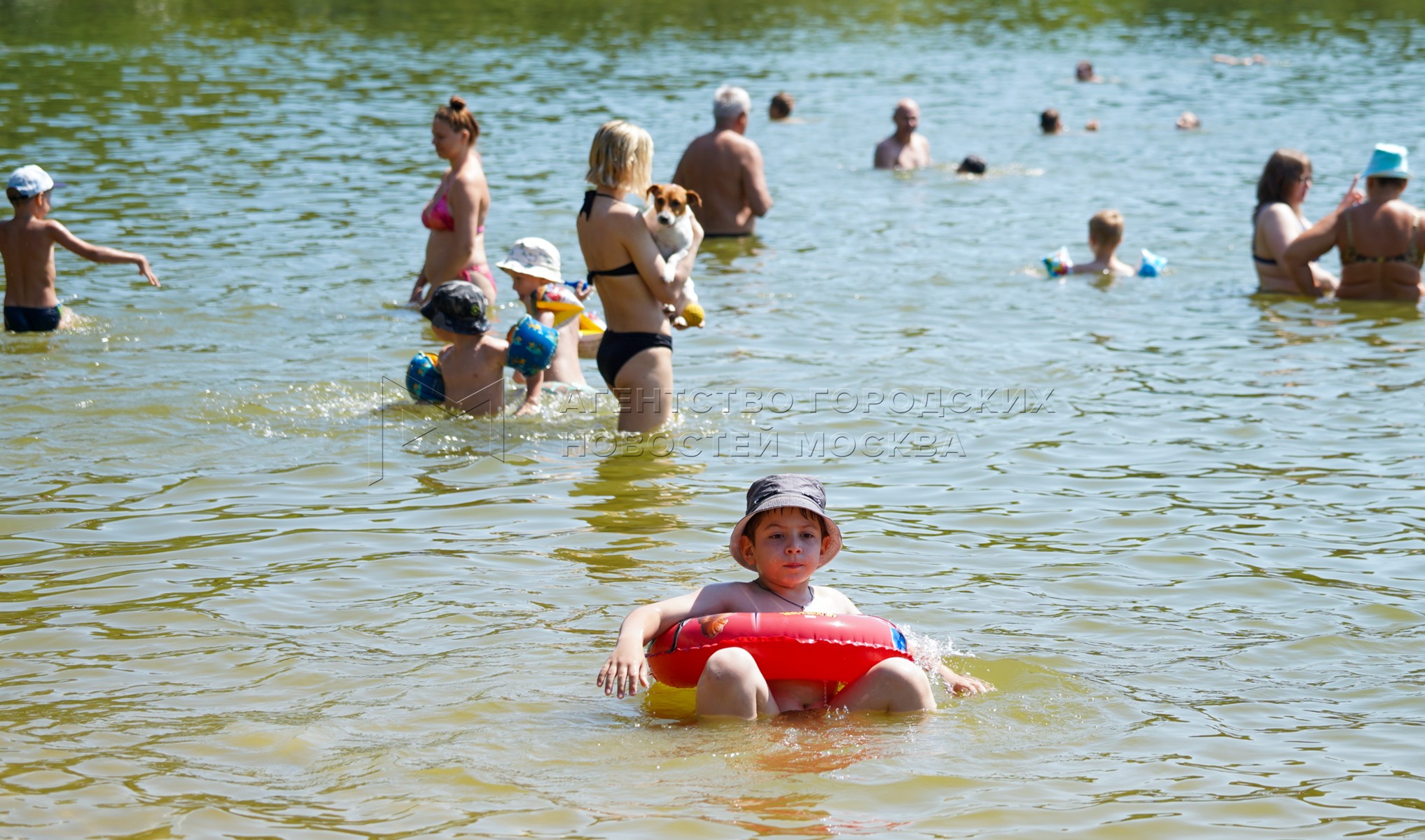 Отдых горожан на пляже у Путяевского пруда на территории парка «Сокольники».