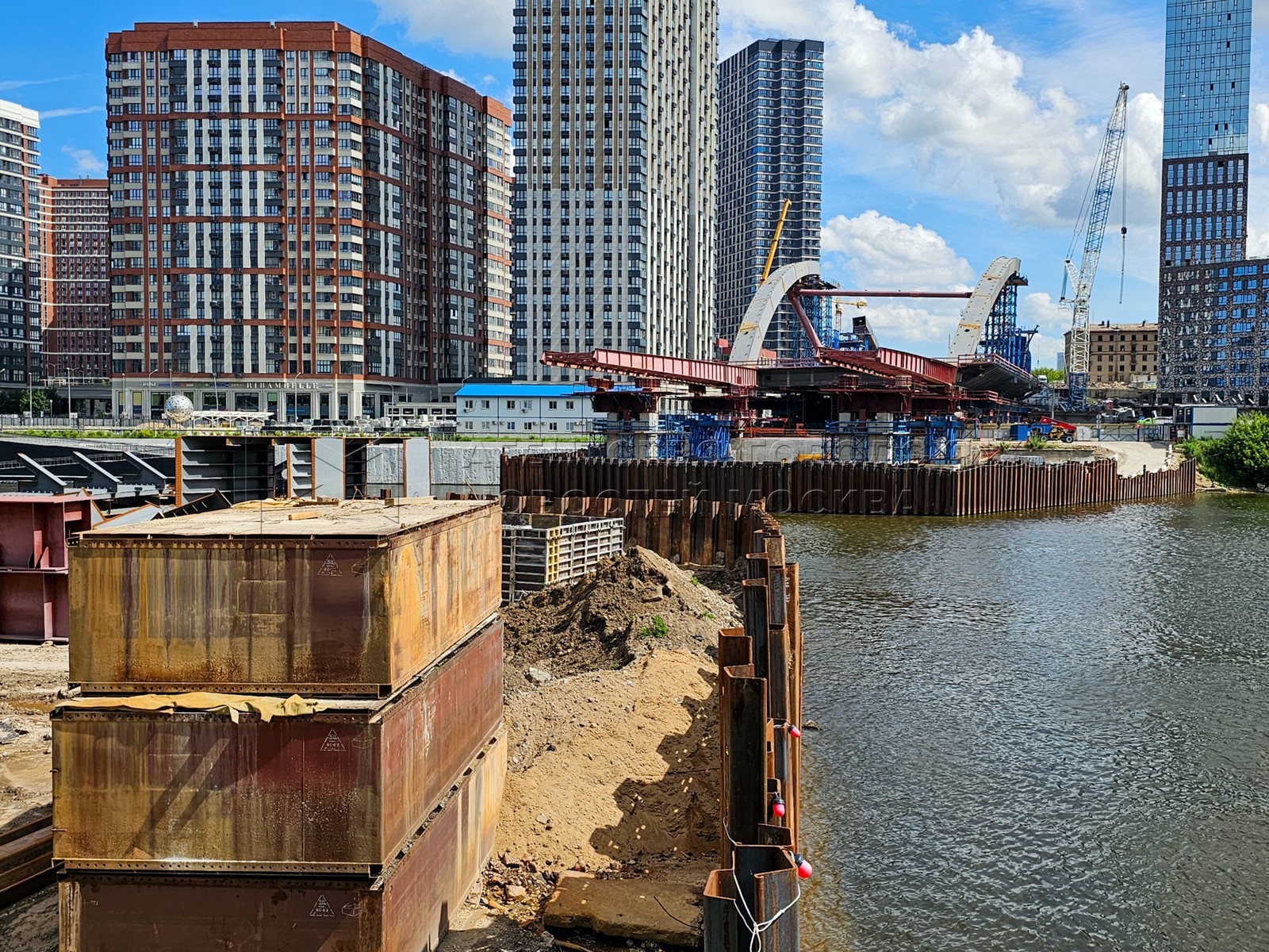 • Описание: Строительство моста через Москву-реку в районе Берегового проезда на западе столицы.