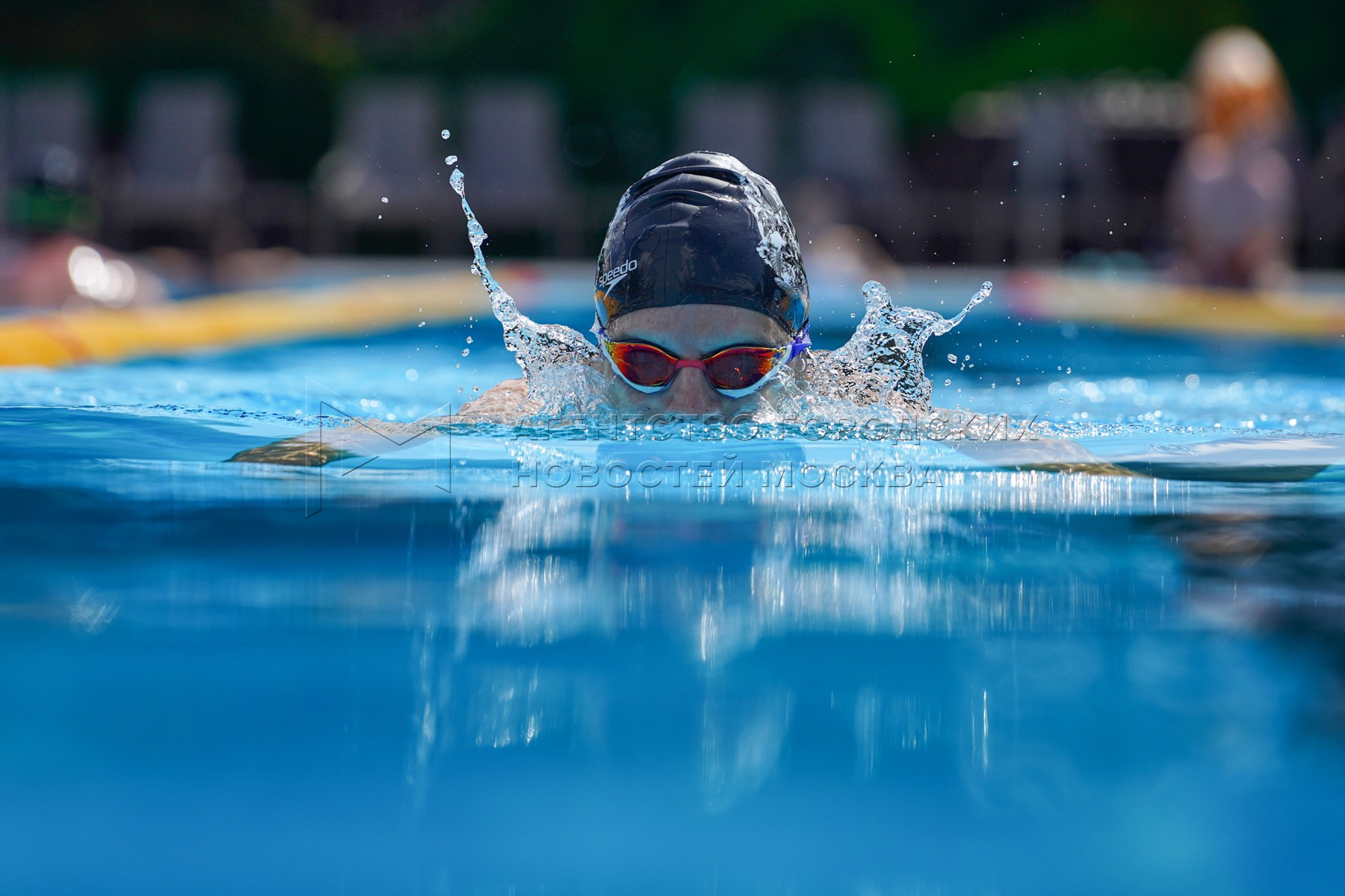 • Описание: Пловец в открытом летнем бассейне в «Лужниках».