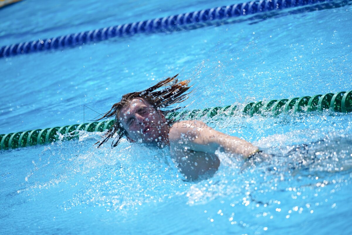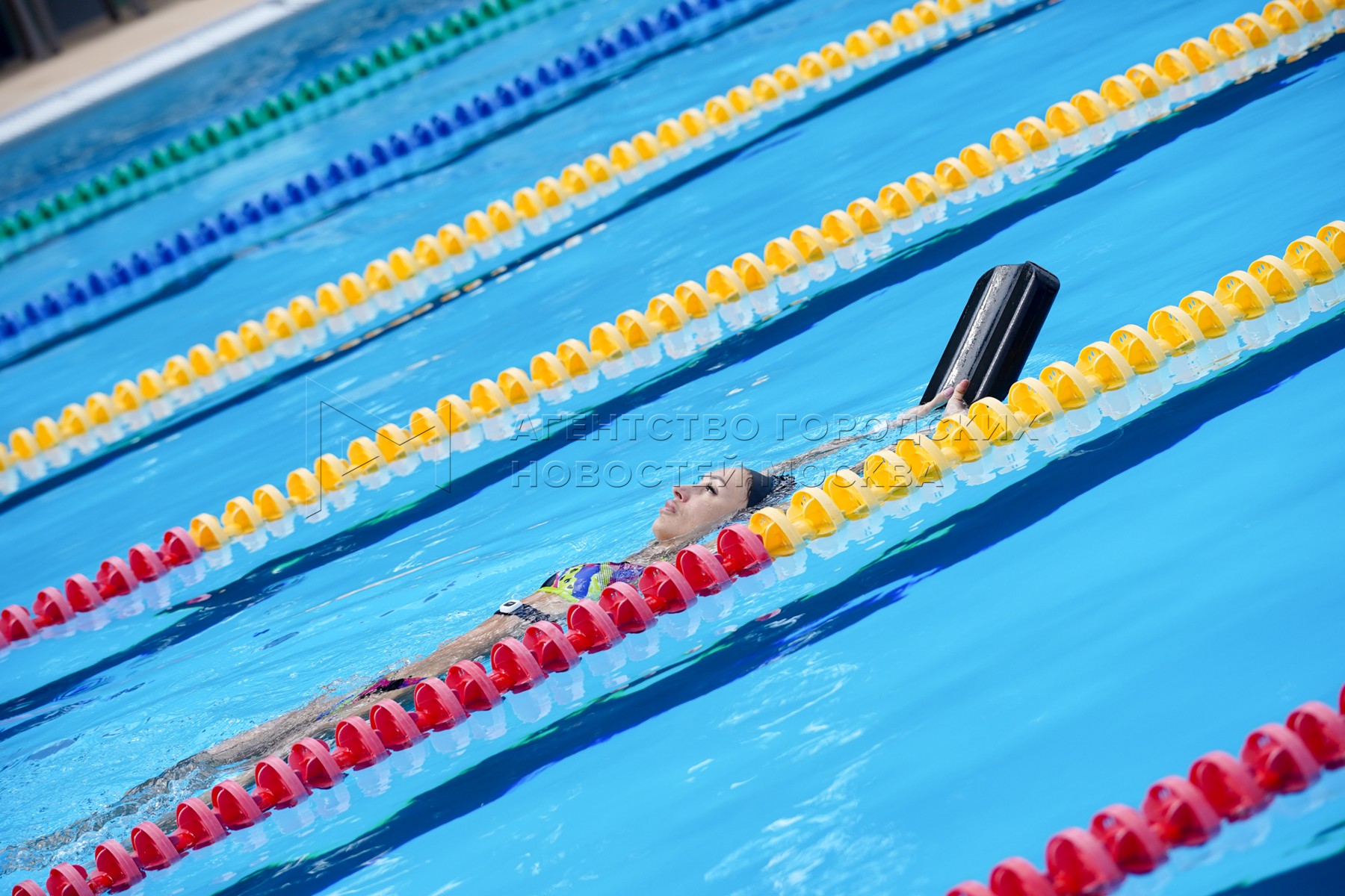 Девушка плывет в открытом летнем бассейне в «Лужниках».