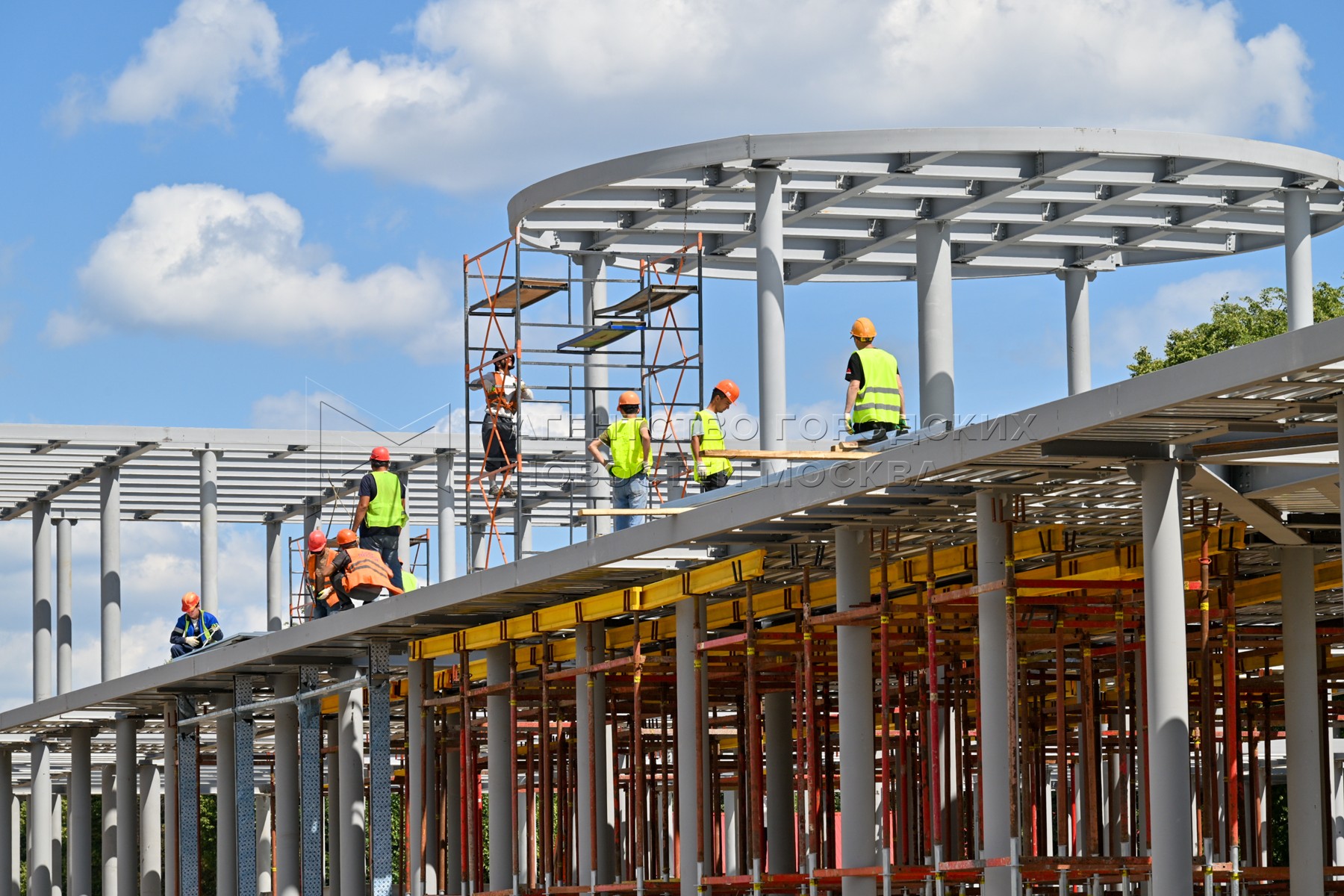 Мэр Москвы Сергей Собянин (в центре) осмотрел ход работ по комплексному благоустр...