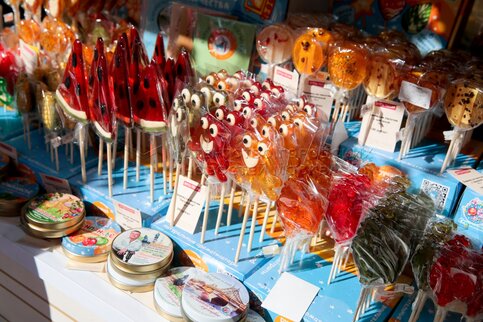 Продажа сладостей на гастрономическом фестивале «Вкусы России» на ВДНХ.
