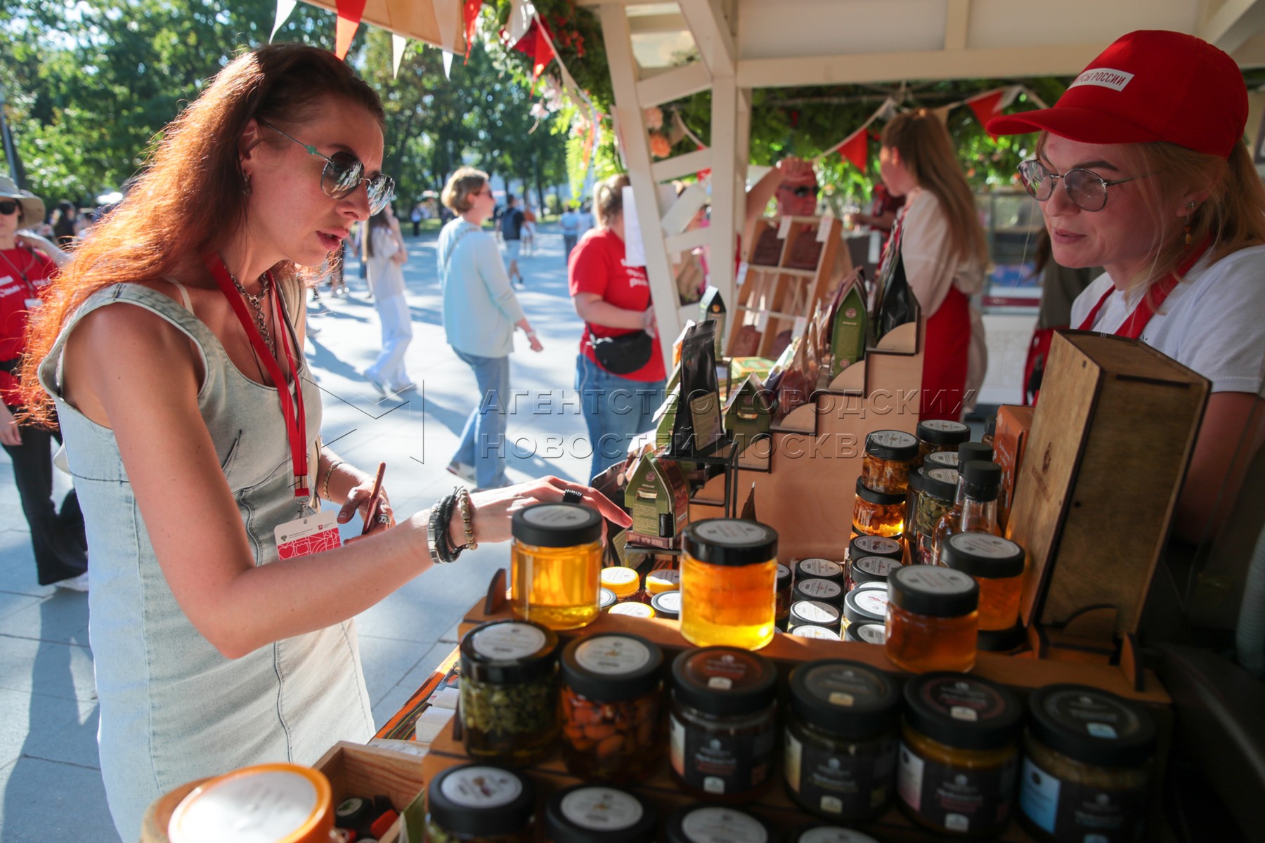 Продажа меда на гастрономическом фестивале «Вкусы России» на ВДНХ.
