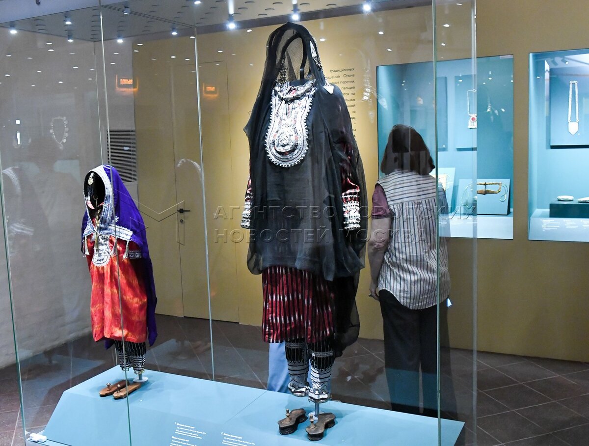 Национальные костюмы на предпоказе выставки «Серебряные сокровища Омана» в выстав...