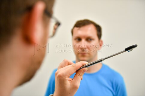 Врач-невролог Тимур Григорьев во время приема пациента в Федеральном центре мозга...