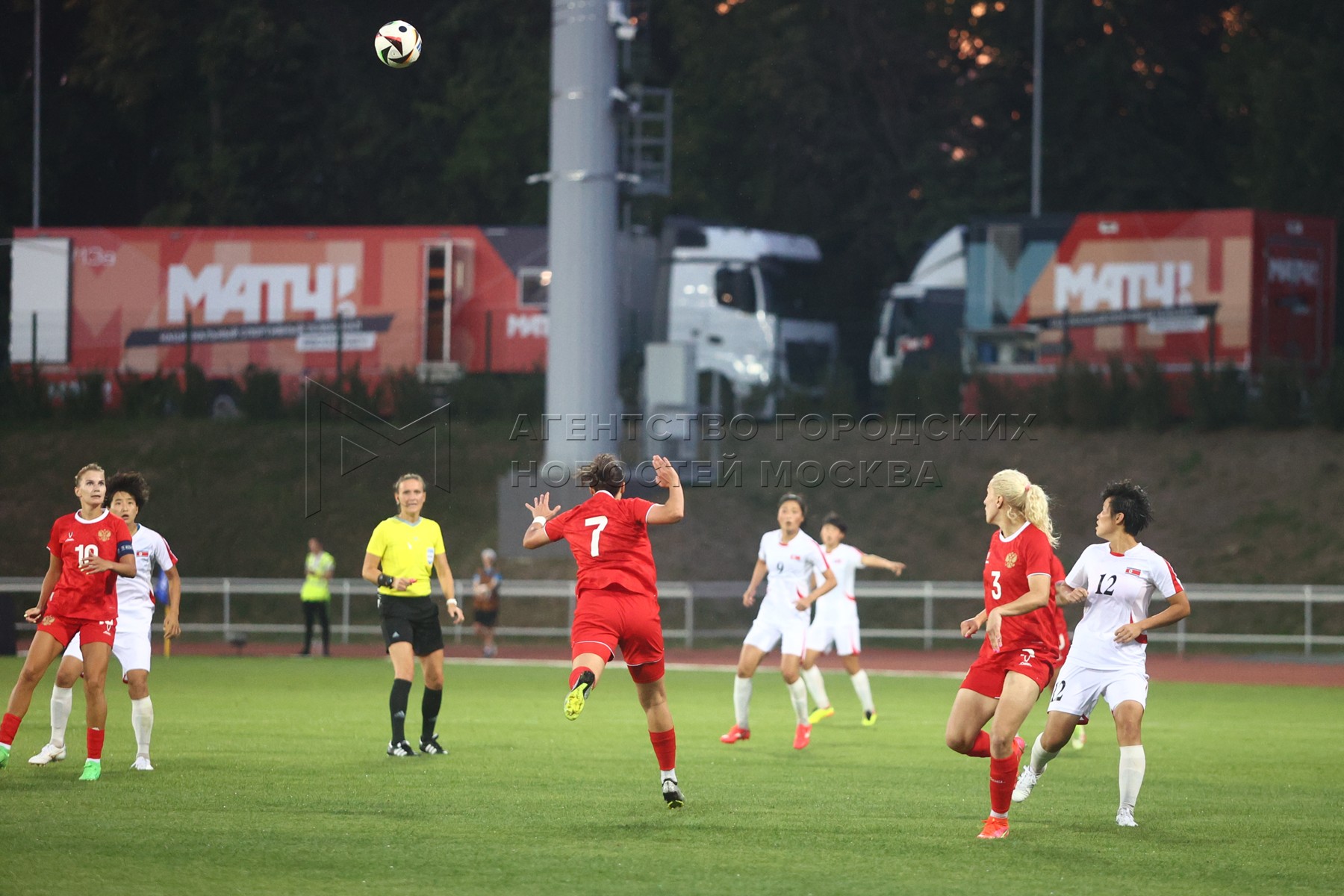 - Описание: Товарищеский футбольный матч женских национальных сборных команд России и КНДР на стадионе «Москвич».