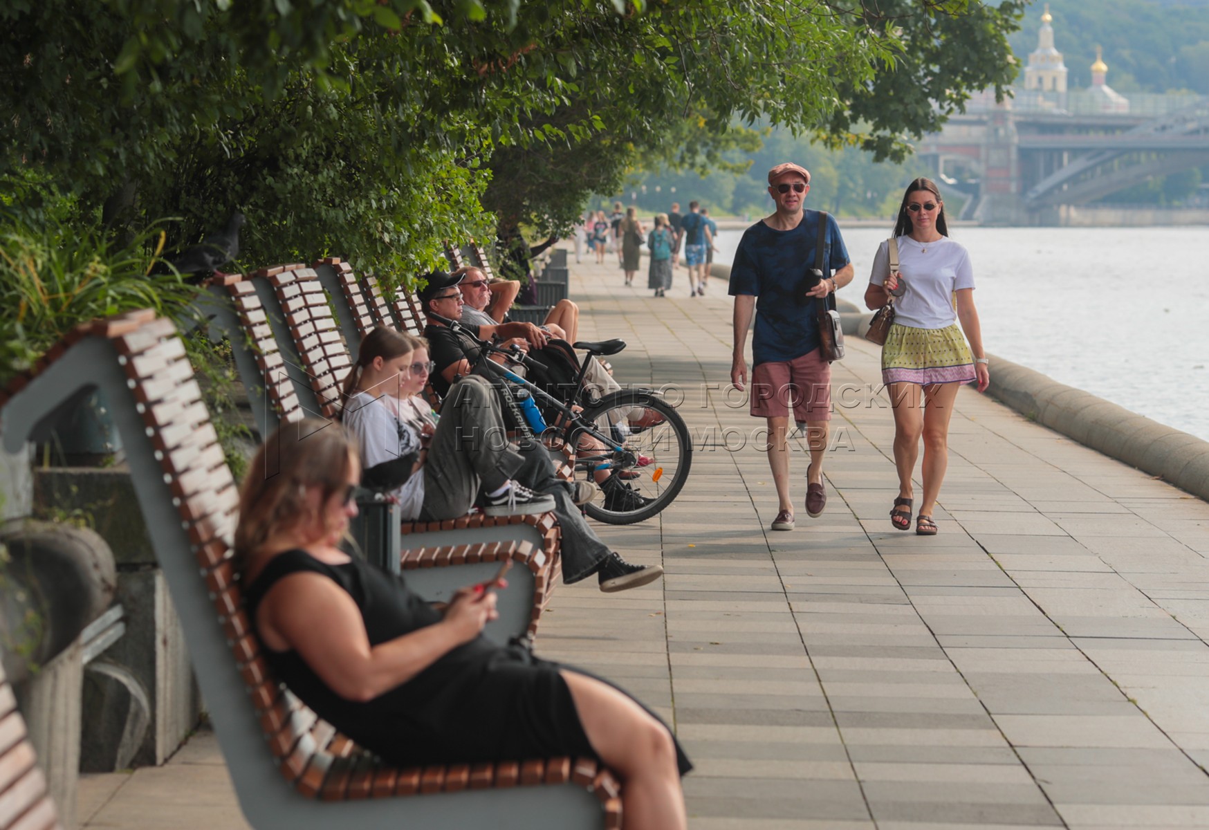 - Описание: Пушкинская набережная. Городские жанры и виды Москвы 16 июля 2024 года.