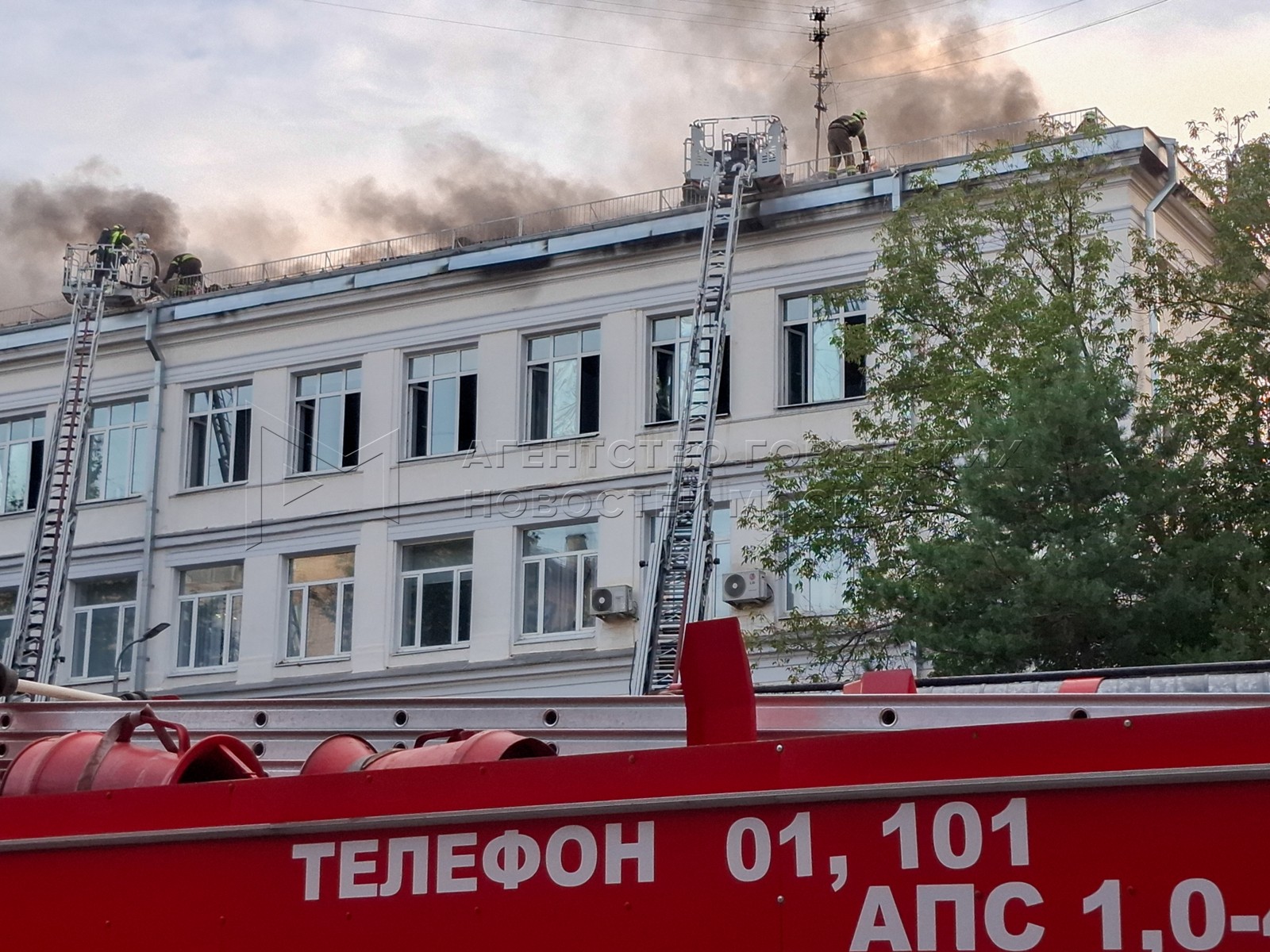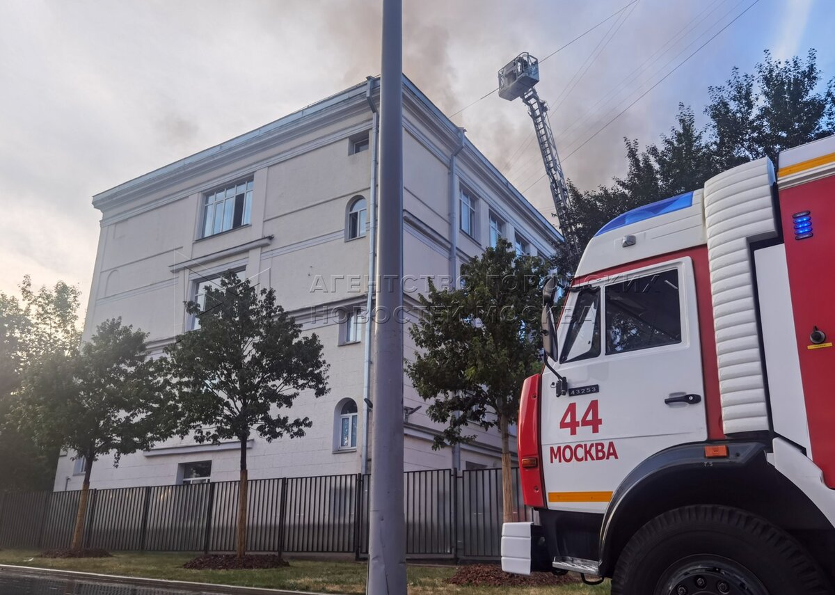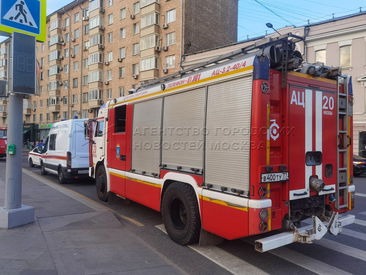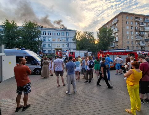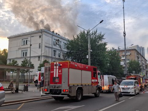 • Заголовок: Оперативные службы на месте возгорания в здании Центра цифровизации образования на Пресненском Валу