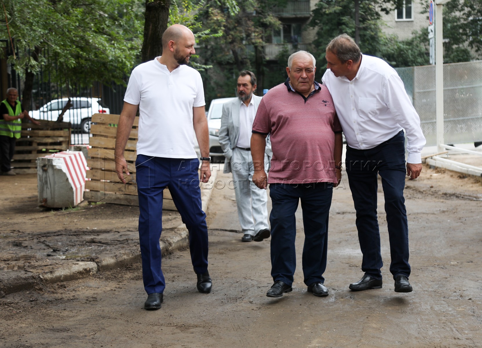 • Описание: Руководитель исполкома «Единой России» в Москве Максим Руднев (слева) и депутат Госдумы Петр Толстой (справа) во время посещения в районе Люблино стадиона «Локомотив», где проводится реконструкция.