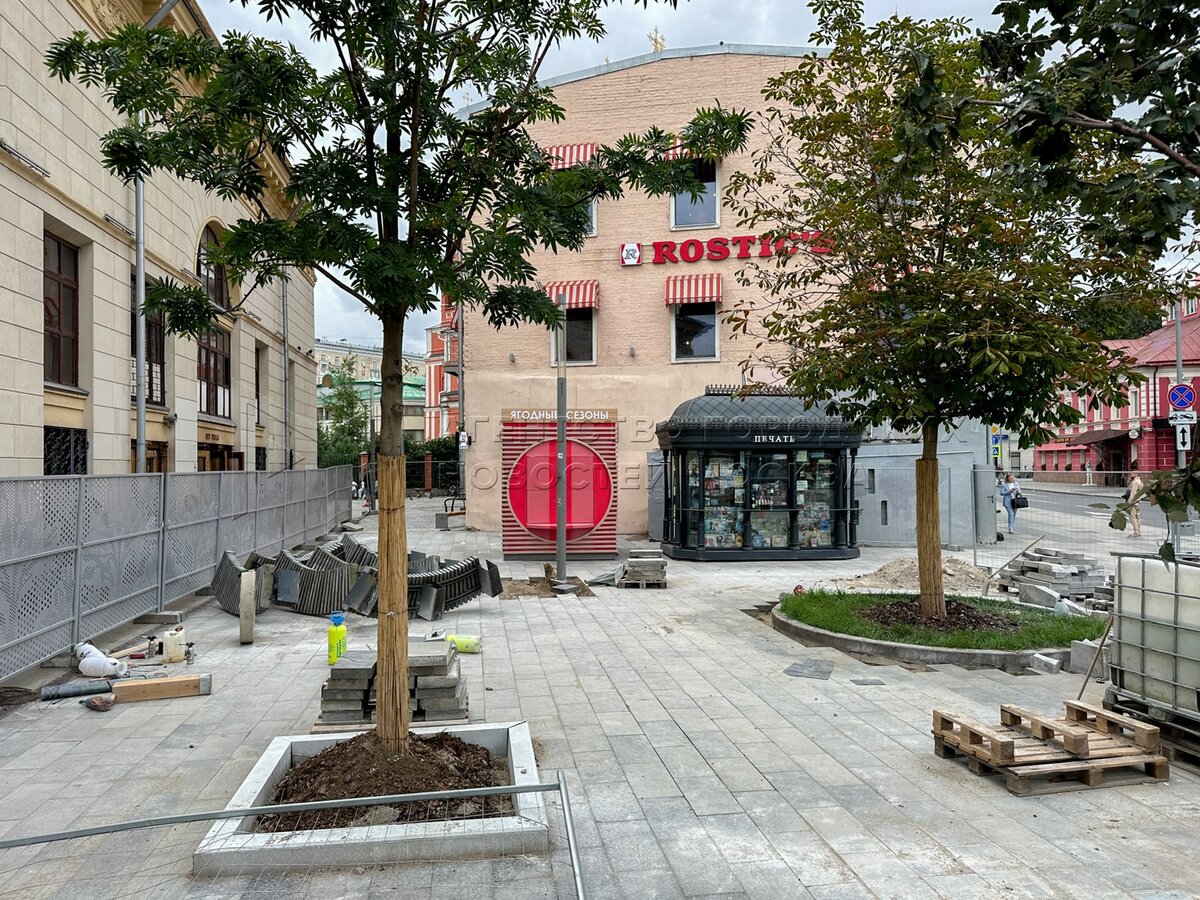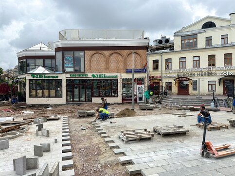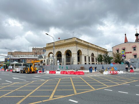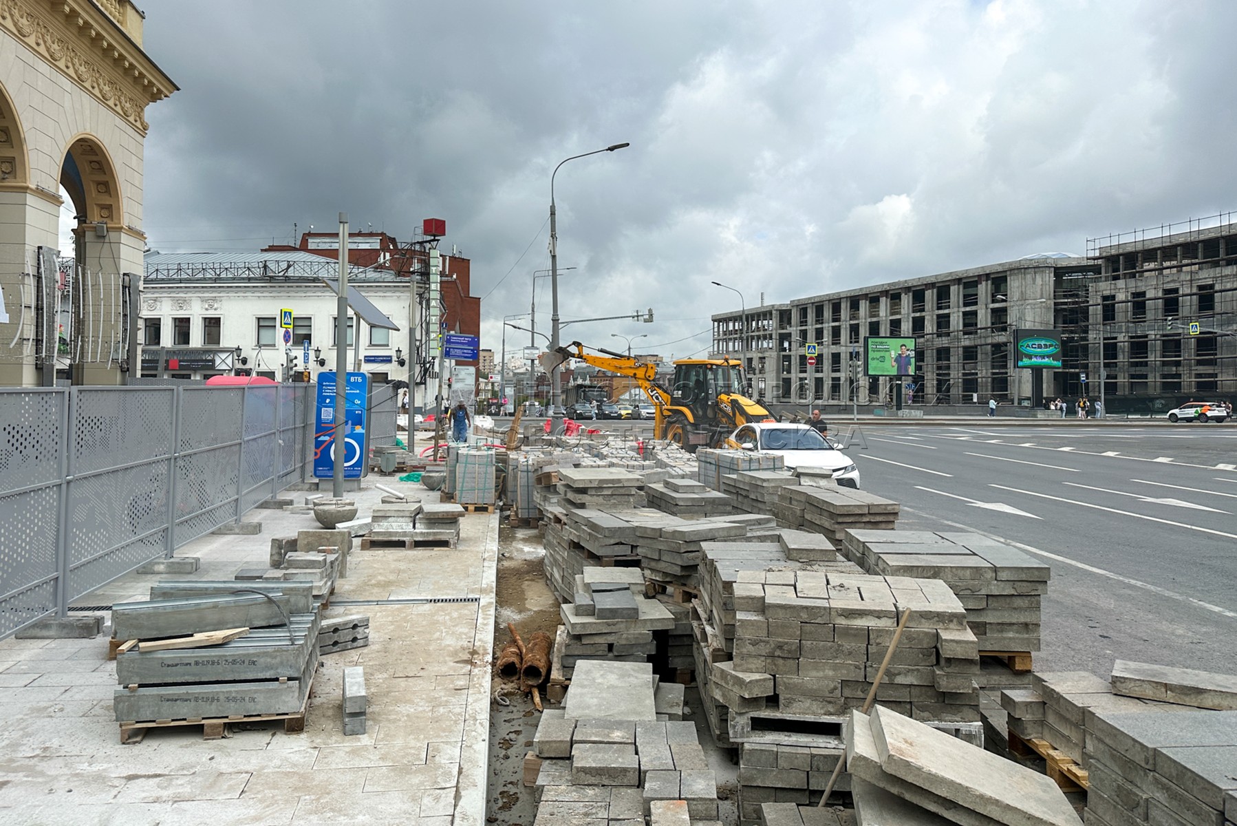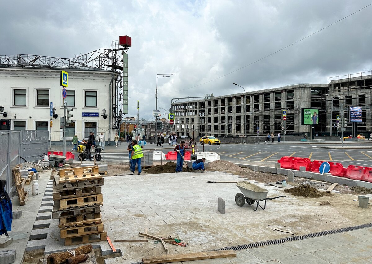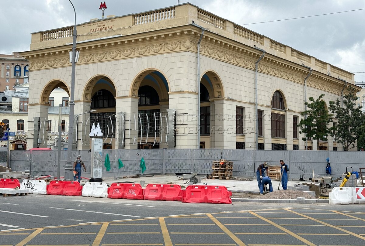 Благоустройство территории возле здания наземного вестибюля станции «Таганская» Кольцевой линии Московского метрополитена.