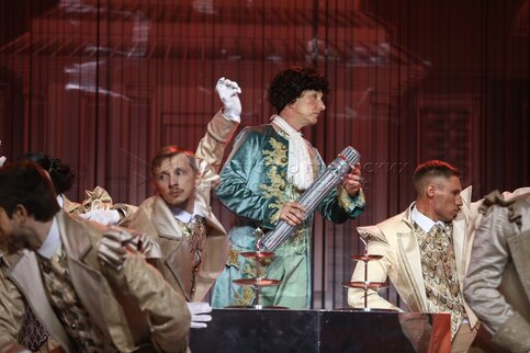 Актер Давид Ванесян в роли зодчего Семена во время премьеры мюзикла «Сокровища ст...