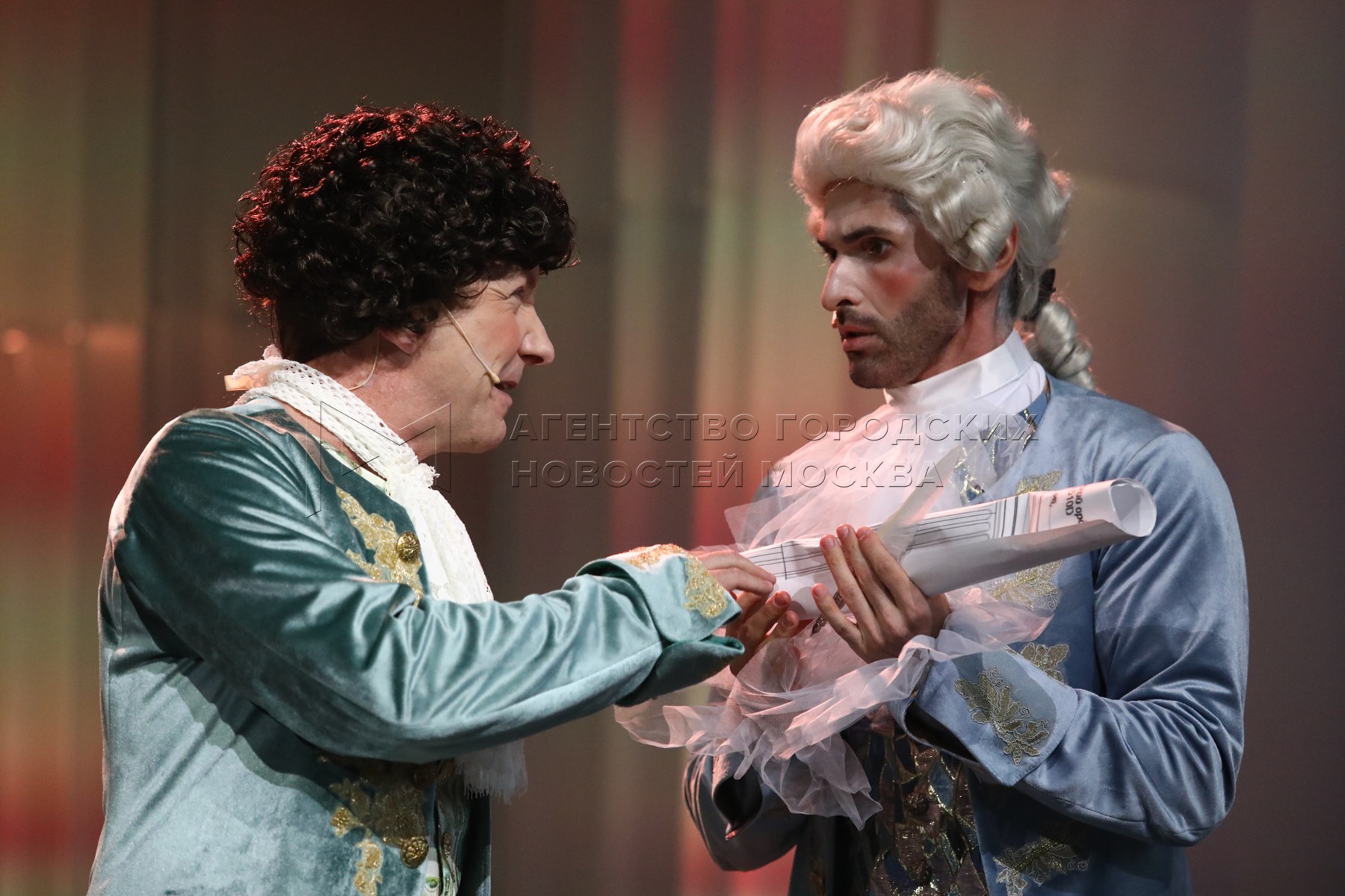 • Описание: Актеры Александр Маракулин в роли князя Петра Ивановича Репнина (слева) и Давид Ванесян в роли зодчего Семена во время премьеры мюзикла «Сокровища старинной усадьбы» в Воронцовском парке. Представление стало началом нового тематического направления фестиваля «Усадьбы Москвы» – «Мюзикл».