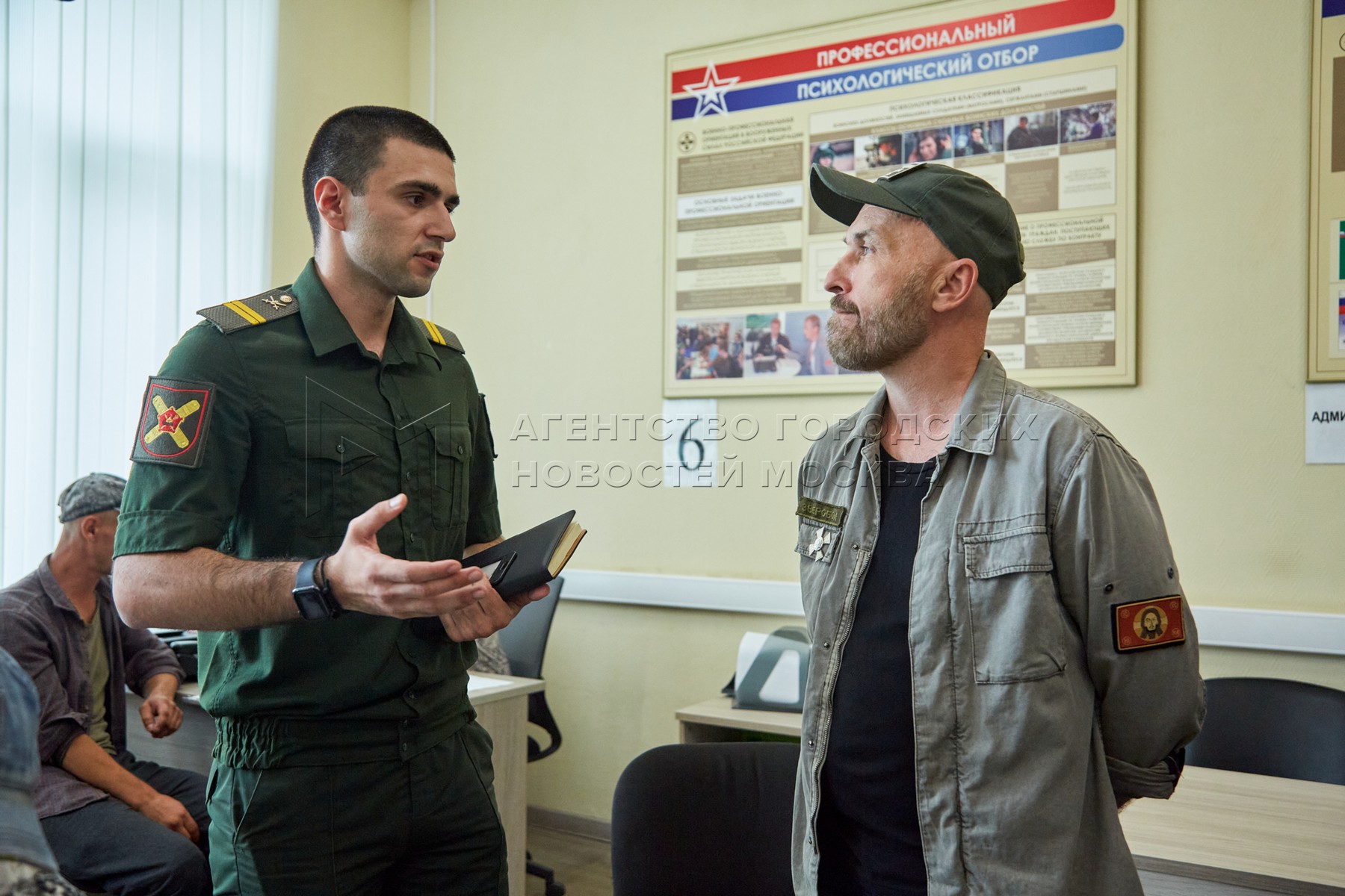 Участники рок-группы «Зверобой» в Едином пункте отбора на военную службу на ул. Я...