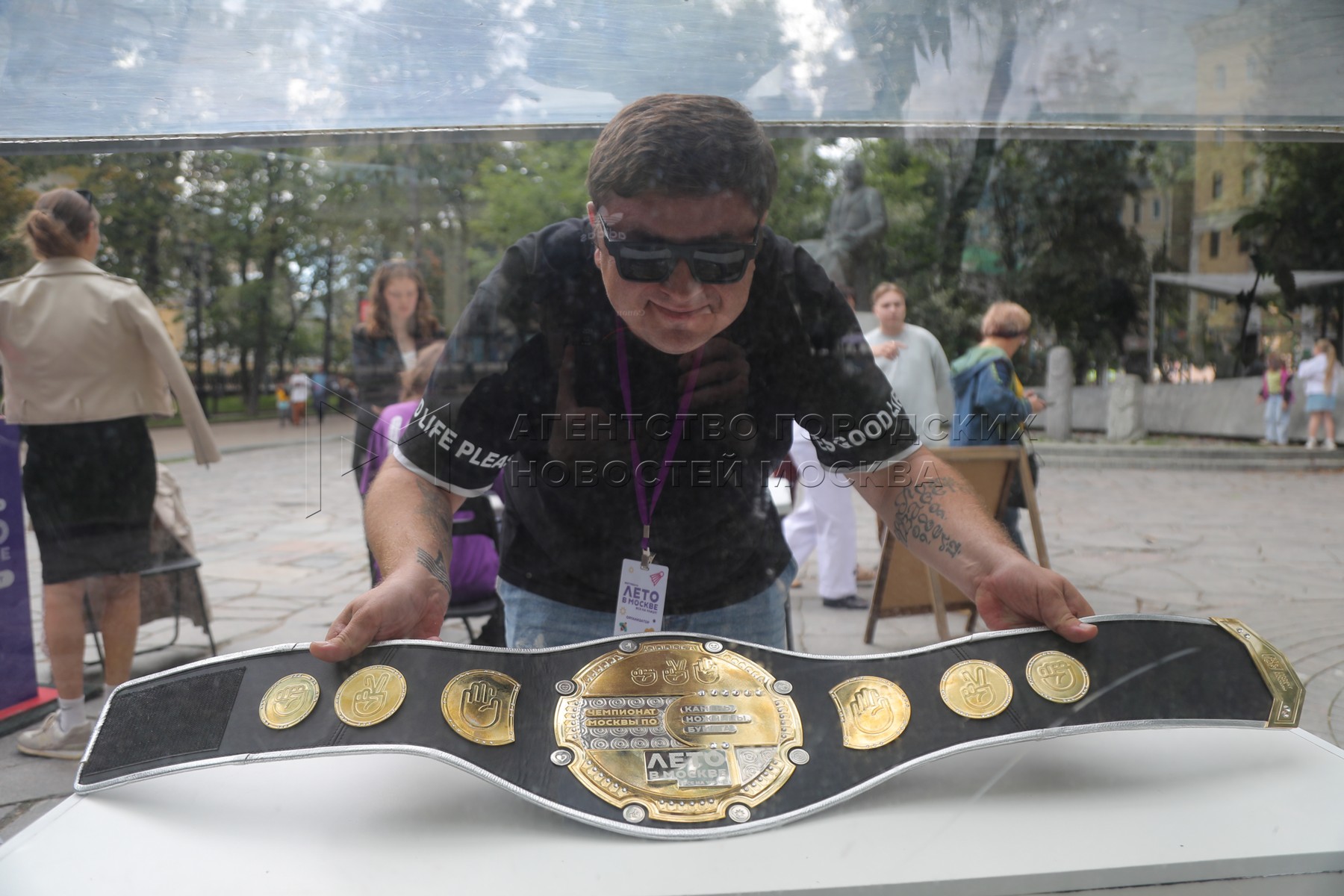 Судья КНБ Никита Генералов (слева). Презентация на Чистопрудном бульваре пояса че...