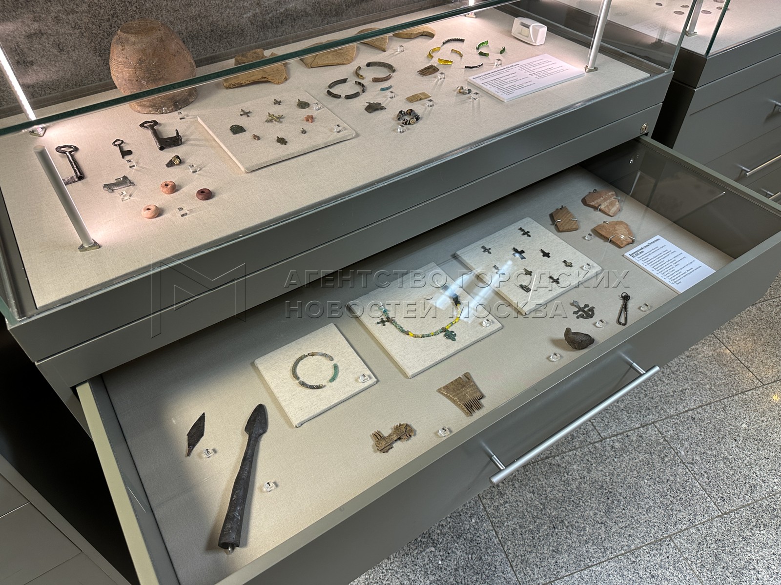 Показ выставки «Археологические памятники» в Музее археологии Москвы.