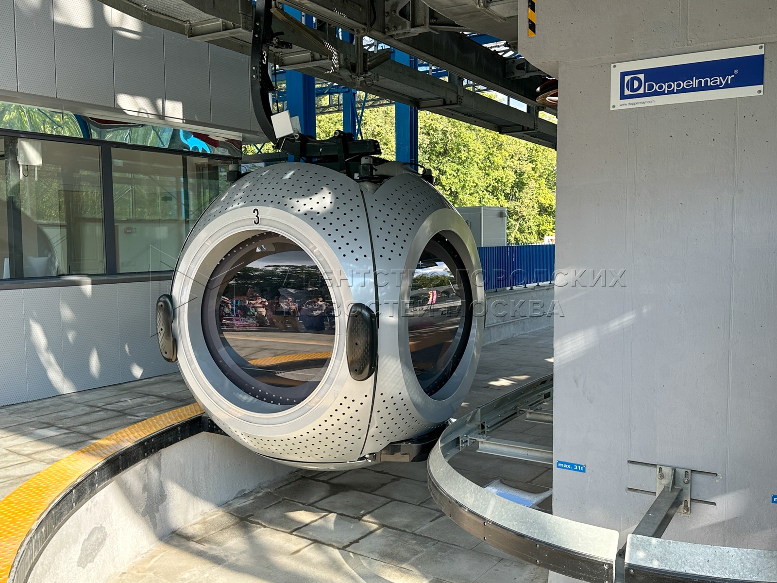 Кабина канатной дороги «Воздушный трамвай» на ВДНХ. Пресс-тур к 85-летию ВДНХ.