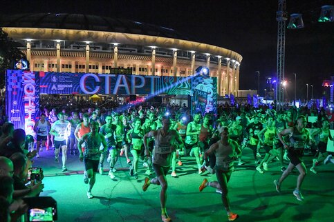 Ночной массовый забег на 10 км по территории олимпийского комплекса «Лужники», Лу...