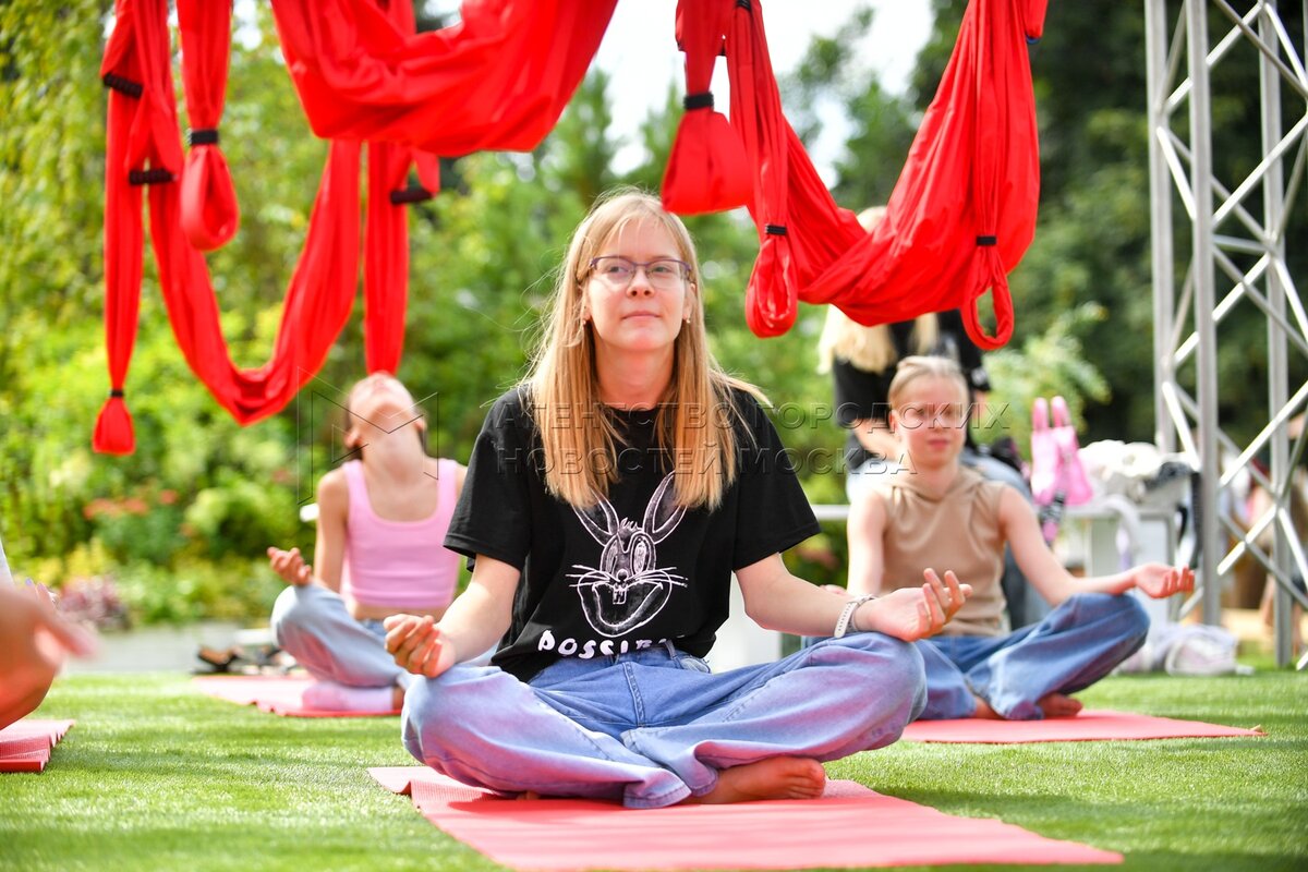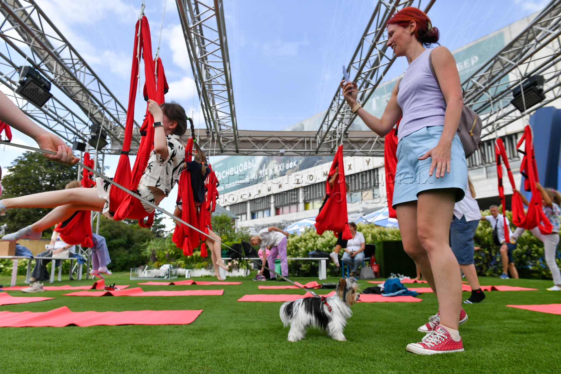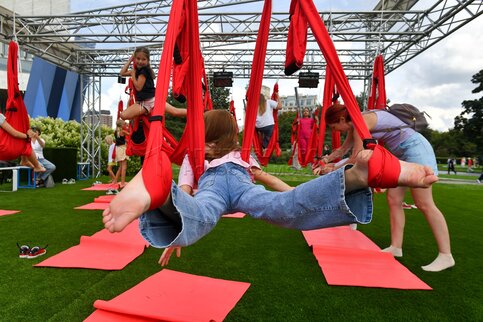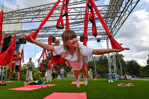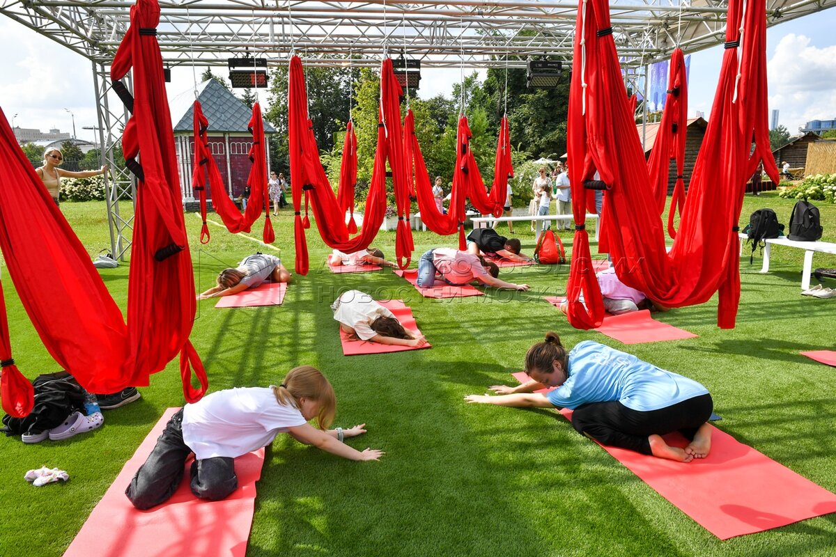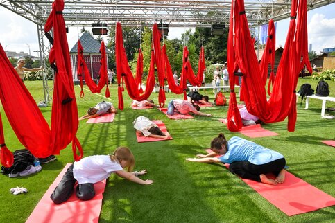 Йога в гамаках в парке искусств «Музеон» в рамках форума-фестиваля «Территория будущего. Москва 2030».