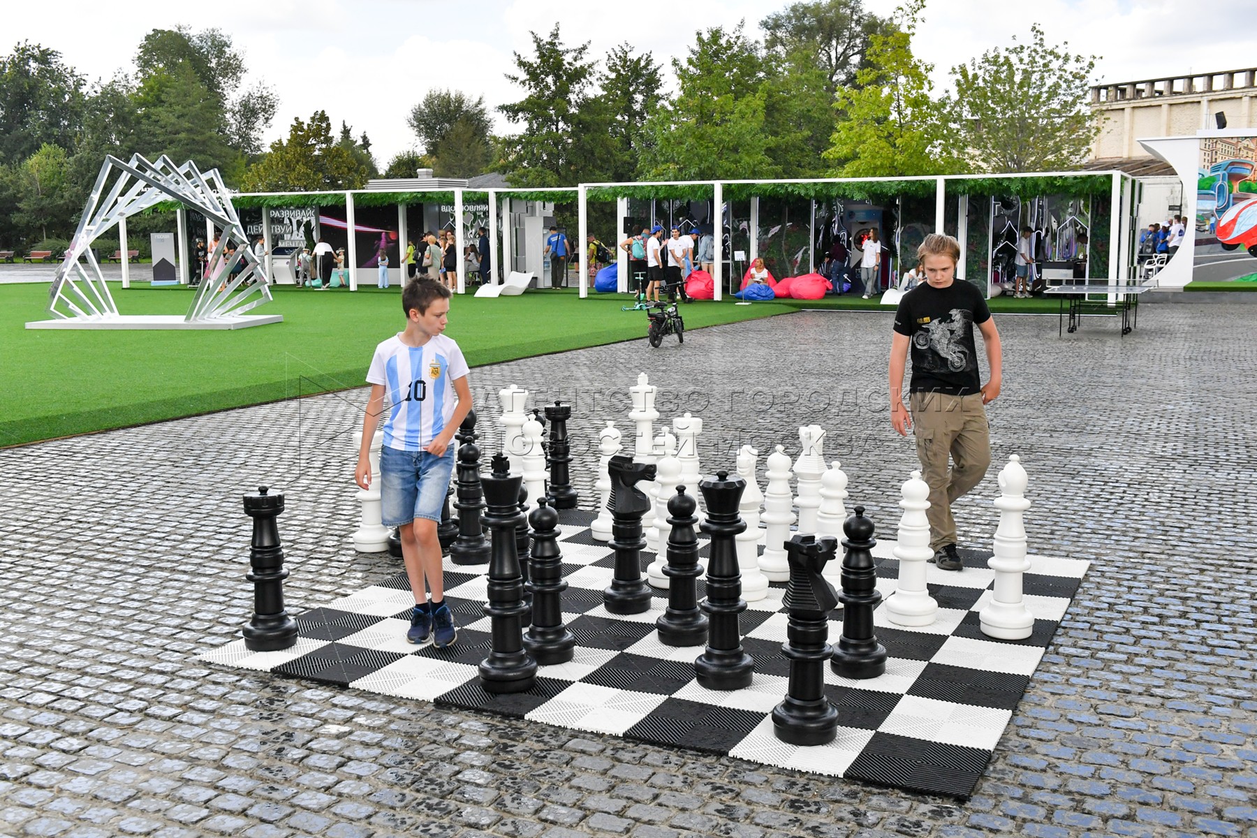 Напольные (уличные) шахматы. Молодежная точка «Телепорт» в рамках форума-фестиваля «Территория будущего. Москва 2030» на площади у Музея современного искусства «Гараж».