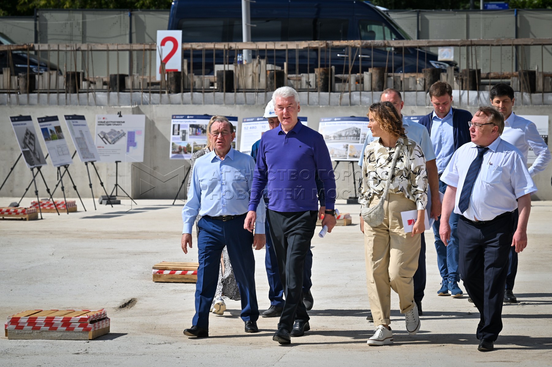 Мэр Москвы Сергей Собянин (в центре) осмотрел ход работ по строительству новых и ...