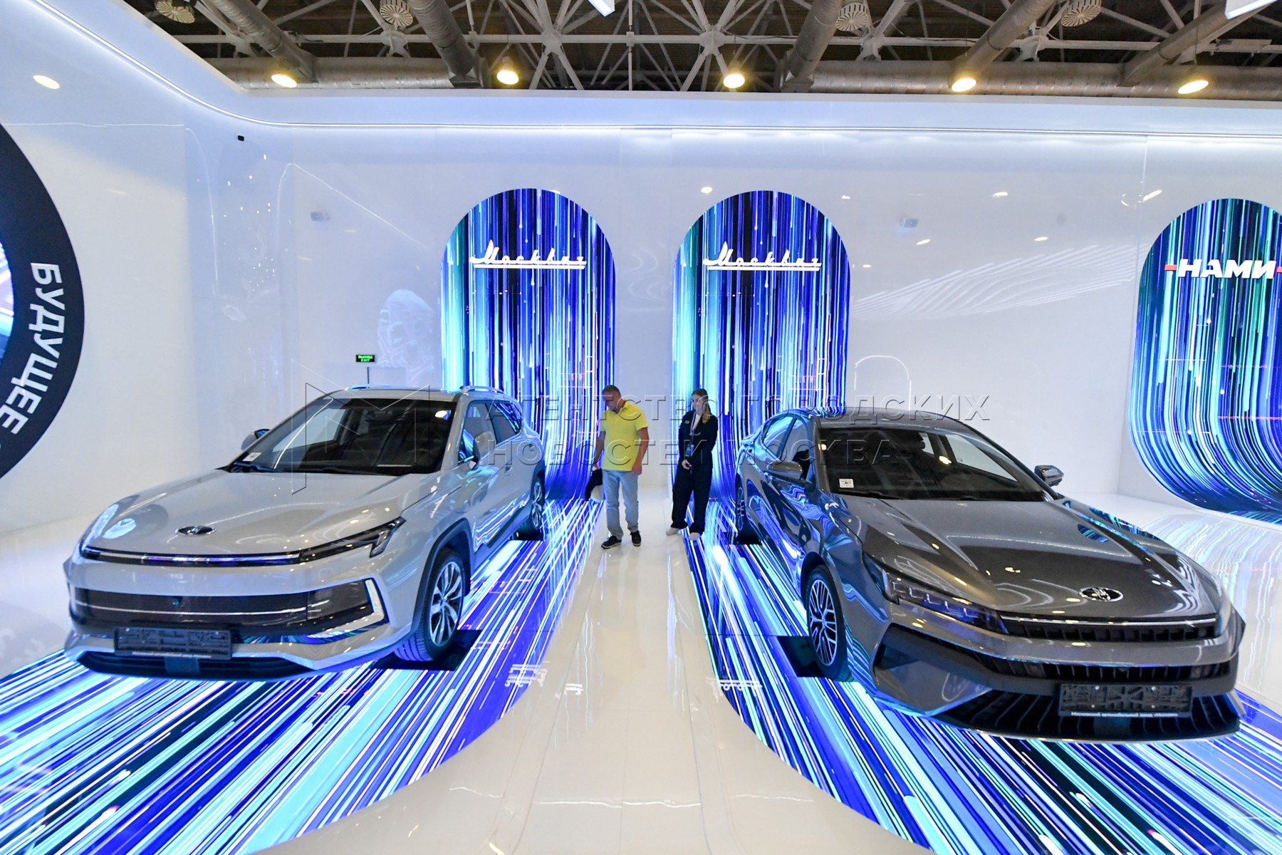 Автомобили «Москвич». Открытие выставки «Москва промышленная. Город будущего» в рамках форума-фестиваля «Территория будущего. Москва 2030» в Центральном выставочном комплексе «Экспоцентр».