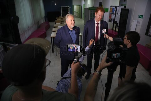 Кандидат в депутаты Мосгордумы Вячеслав Арбузов (слева) на встрече сторонников «А...