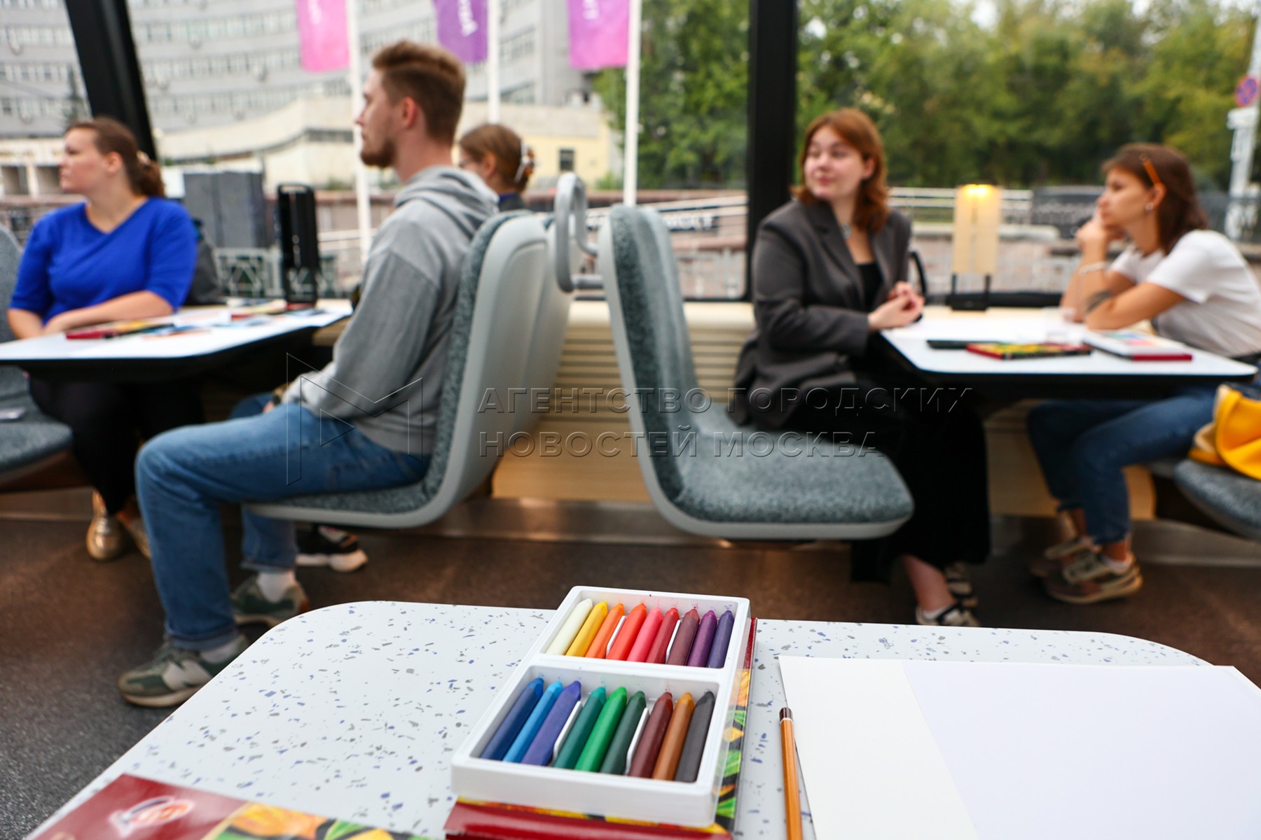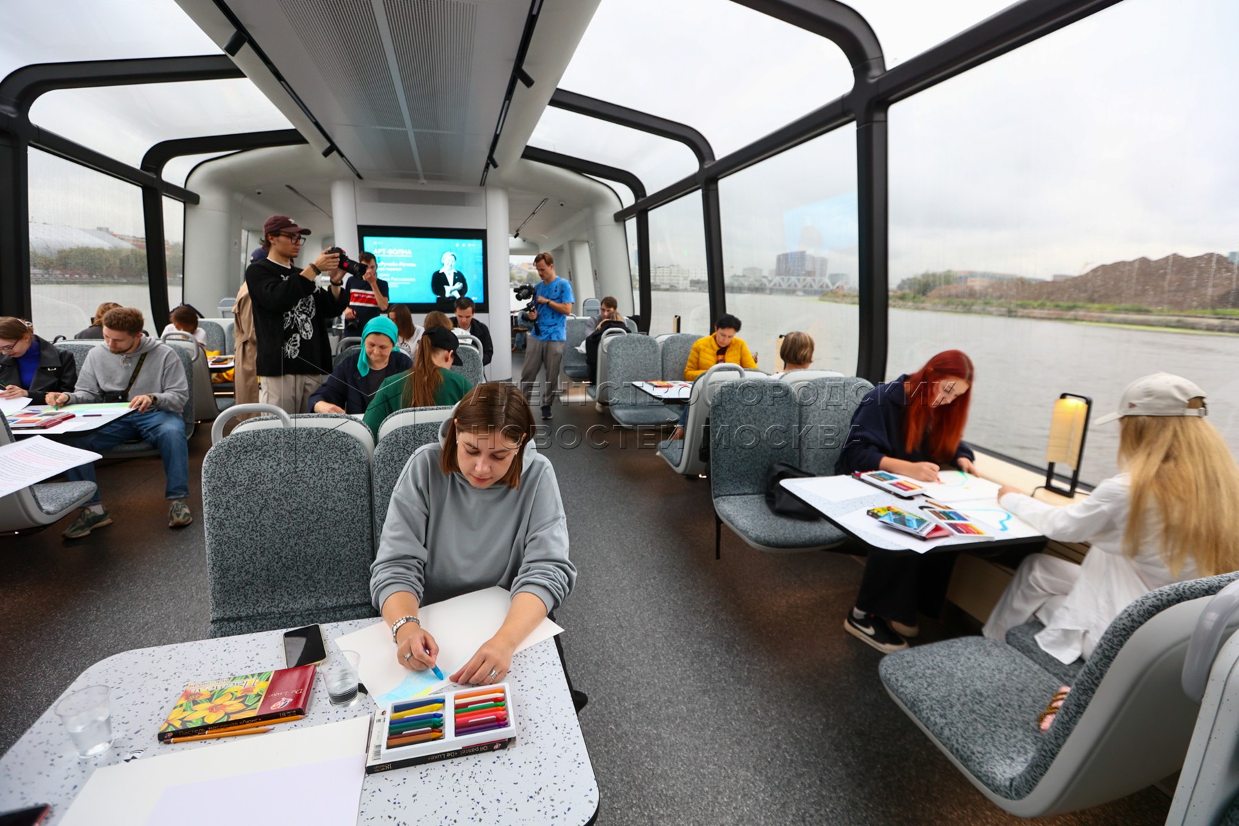 Проект «Искусство в метро» на борту электросудна на Москве-реке.