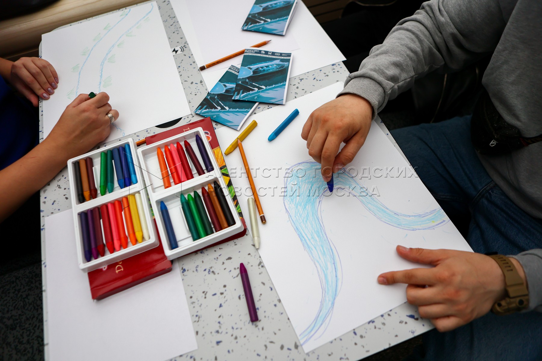 Наборы пастели. Арт-терапия в рамках проекта «Искусство в метро» на борту электро...